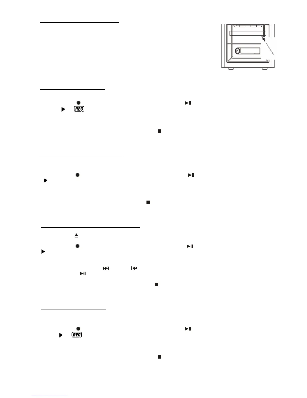 3. Press the “CD 2 REC “ button (29) and then the CD 2 “Play/Pause ” button (19) until the play indicator