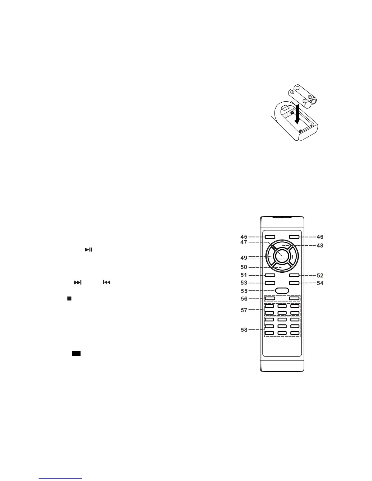56) VOL - / + Press to adjust the volume level down or up