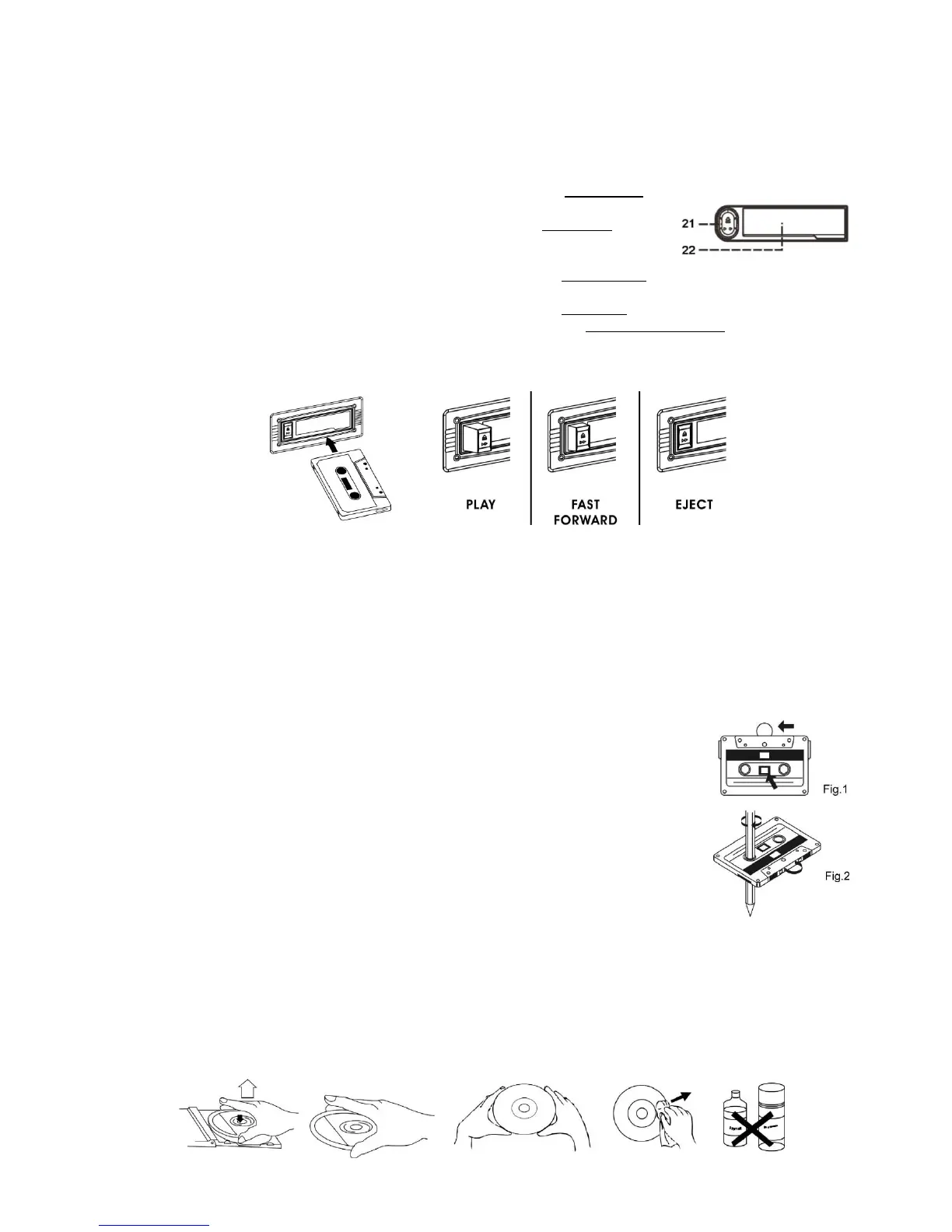 - Make sure the direction is correct when inserting a tape into the cassette slot. Some searching noise will be