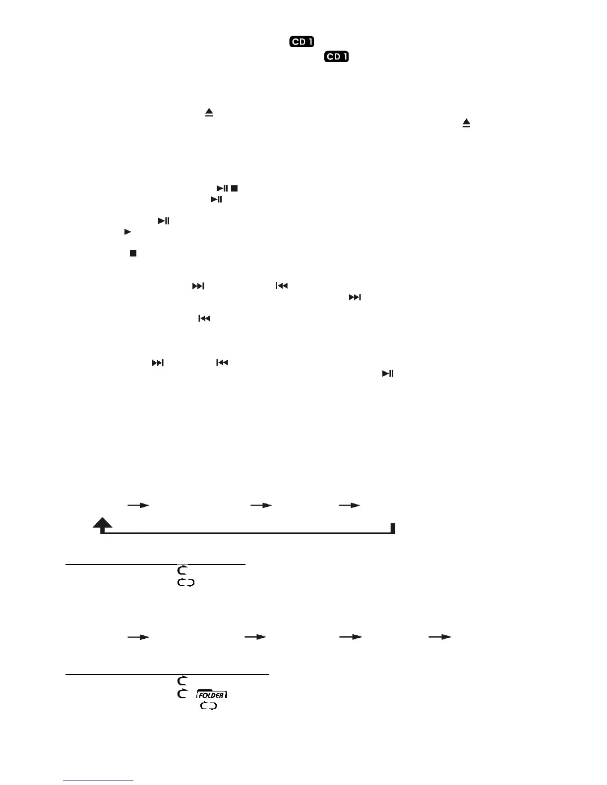 Press the CD 1 PLAY MODE button (6) repeatedly (before or during playback) to play a file, folder (MP3 disc only) or