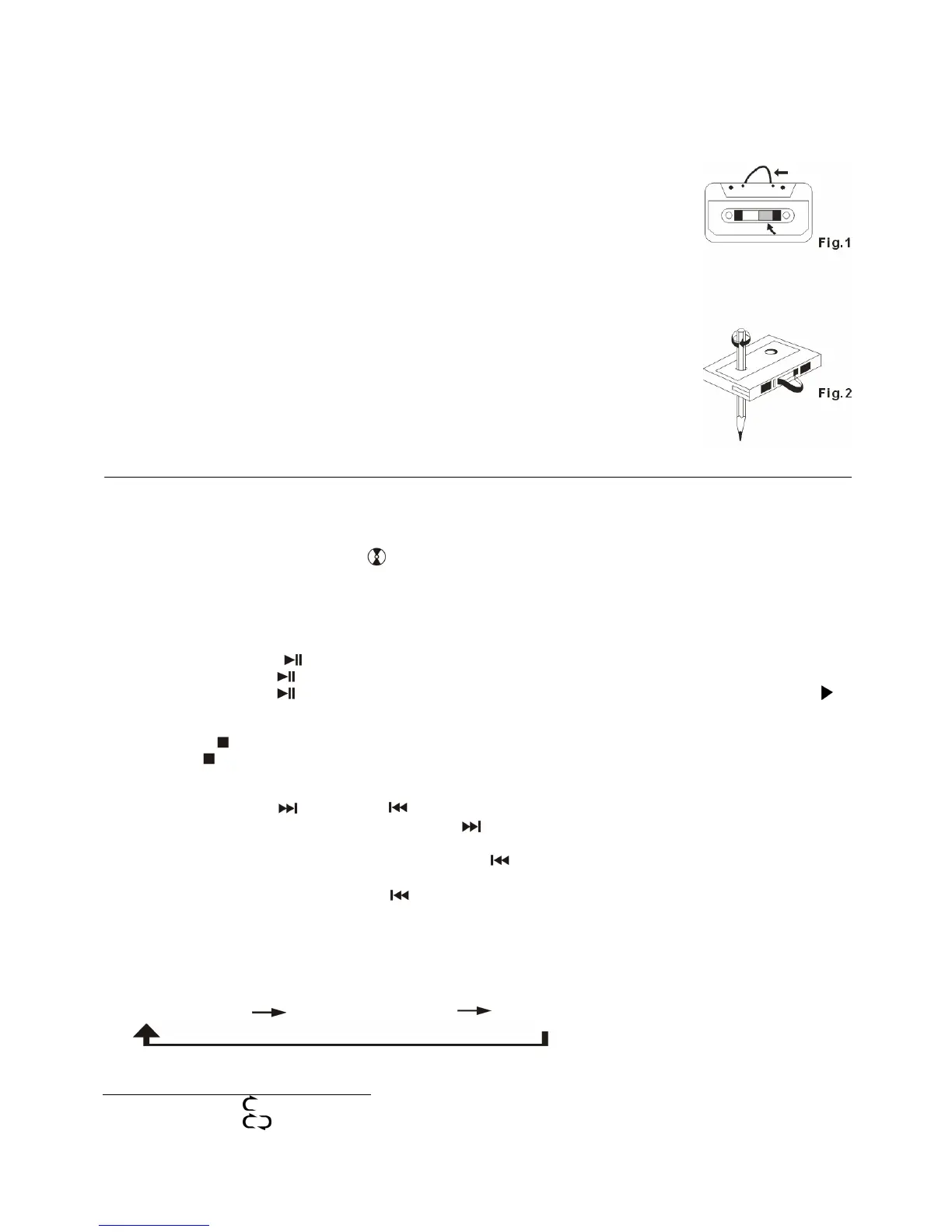 NOTES: If the cassette feels tight whilst performing this operation (see fig. 2), the tape