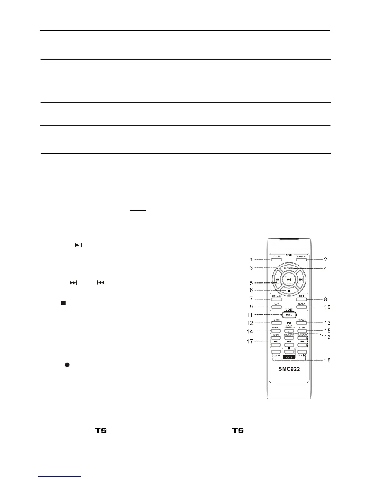 16) Track separation “ “ In CD Recording Mode, press to switch the “ “ function on or off.