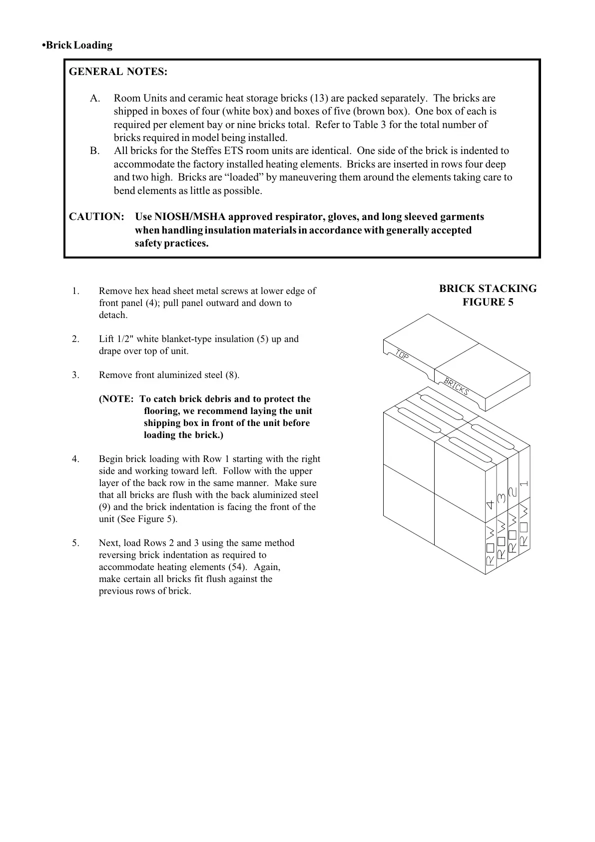 accommodate the factory installed heating elements. Bricks are inserted in rows four deep