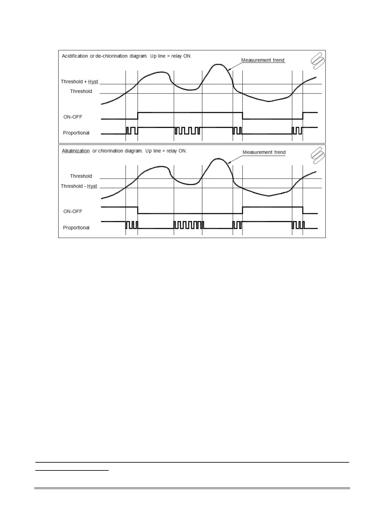 - Proportional control: this parameter sets the proportional band, typically between 0.30 and 0.50 pH.