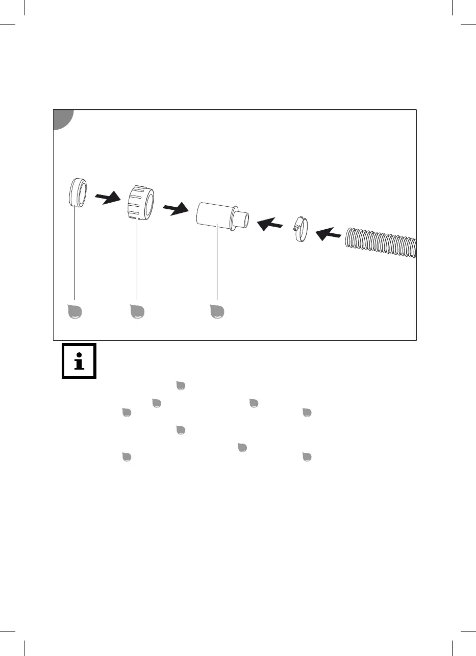 à l’aide d’un collier de serrage sur l’extrémité du tuyau d’entrée
