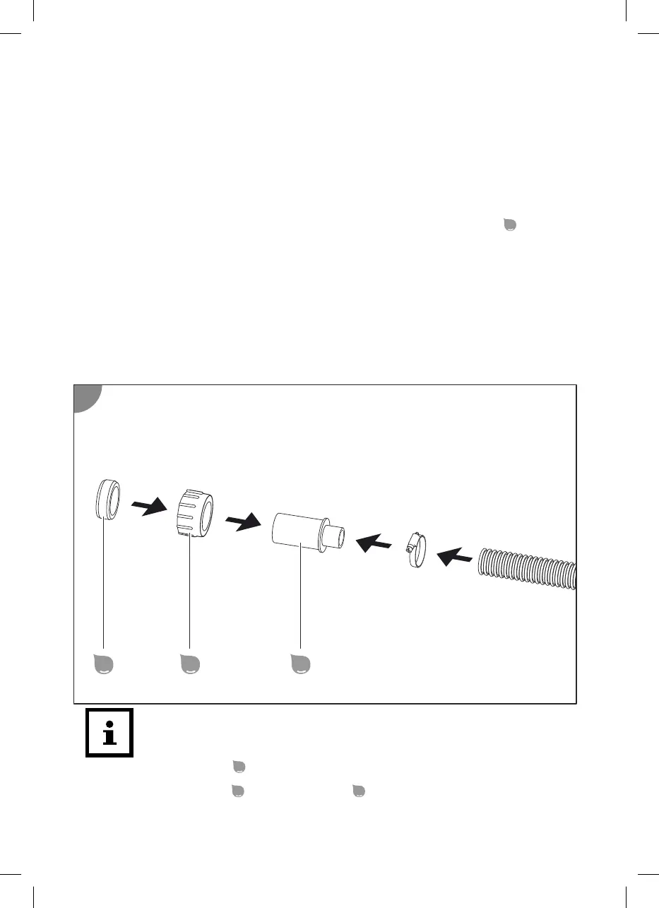 4. Installare il tubo di scarico (tubo da giardino 13 mm, 1/2”) per l’acqua di condensa che si forma
