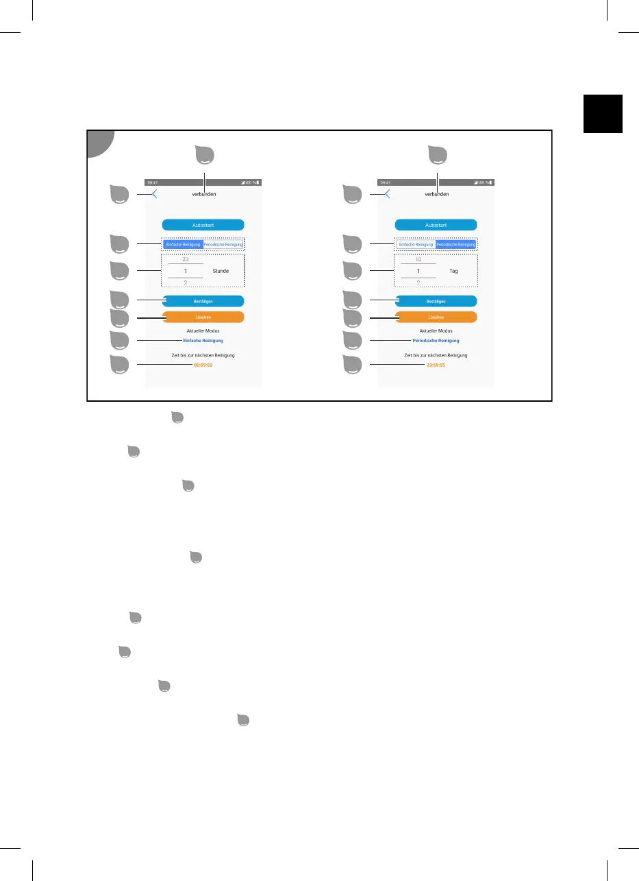 Einfache Reinigung bestimmt die Verzögerung bis zum Start der Reinigung (1 bis 23 Stunden).