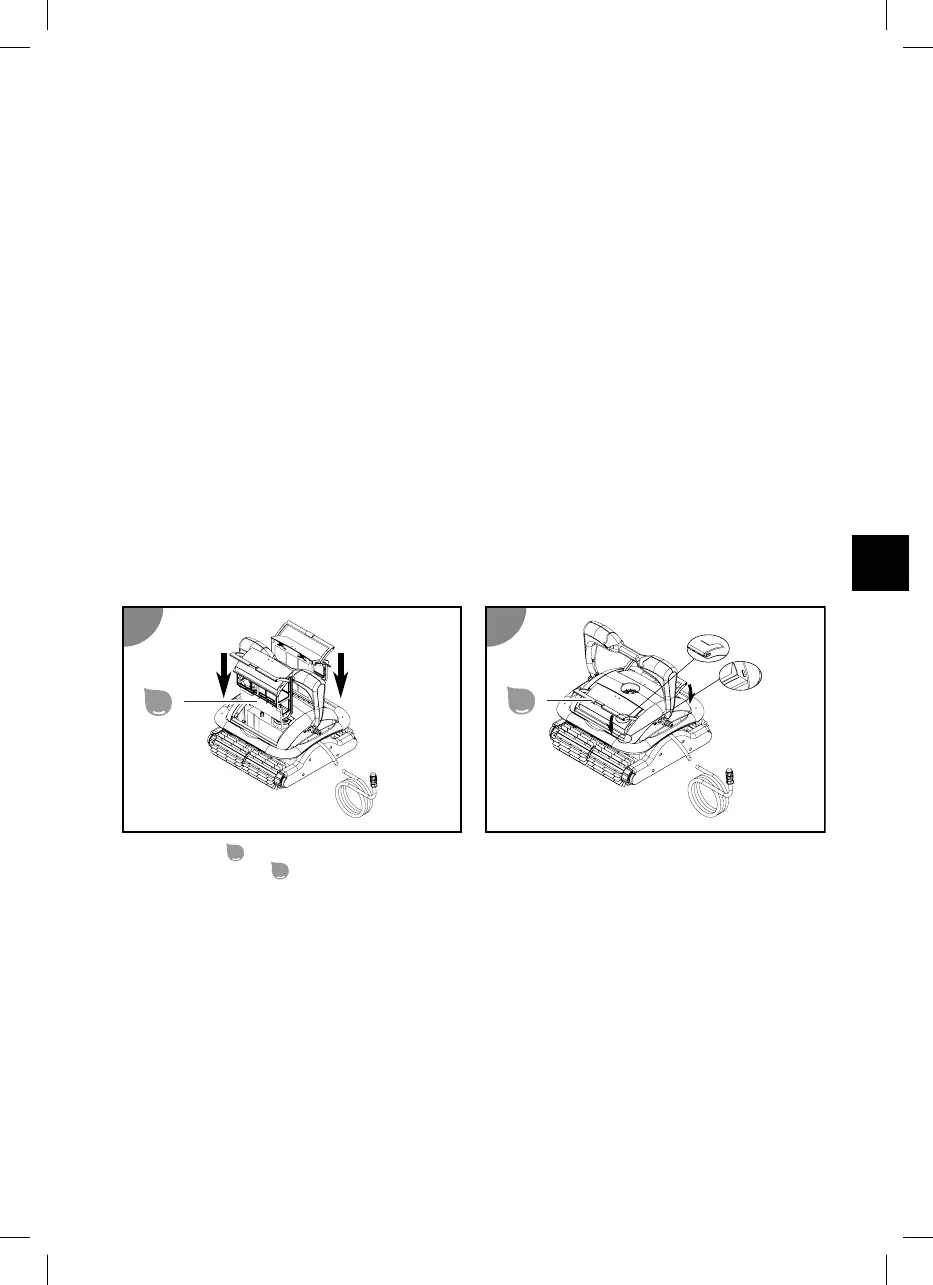 - Filtrsko napravo izklopite najmanj eno uro pred začetkom čiščenja, da se lahko nečistoče iz vode
