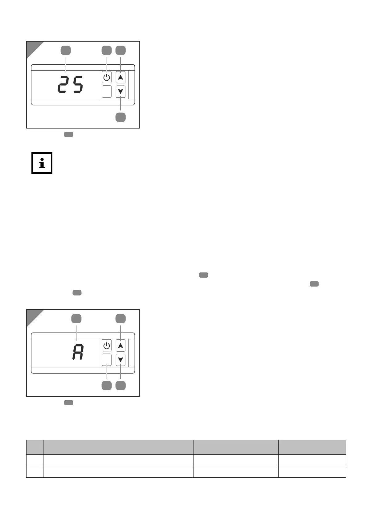 - A kijelző14 a kiválasztott paramétert (A, B, C, 1–8) mutatja.