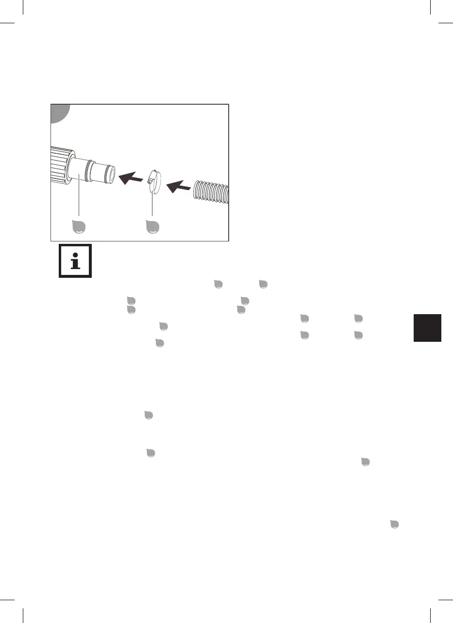 2. Nałóż przewód odpływowy (wąż ogrodowy) wody kondensacyjnej na króciec spustowy