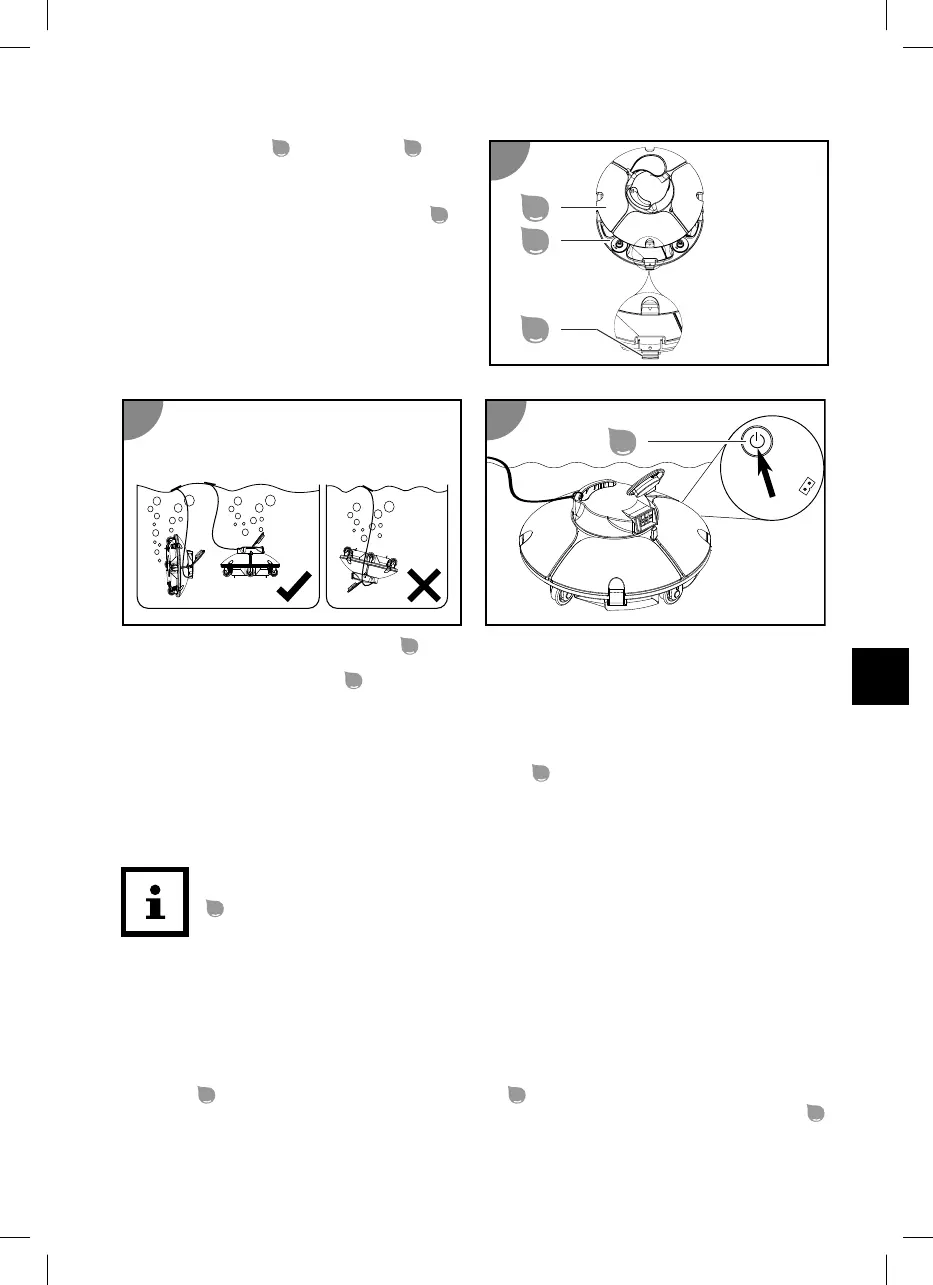 Upewnij się, że spód urządzenia dotyka dna basenu i że czyszczenie może się rozpocząć bez