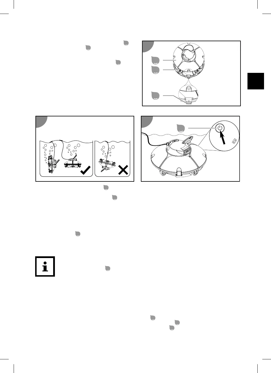 Vérifiez que le dessous de l’appareil touche le fond de la piscine et que l’appareil peut démarrer le