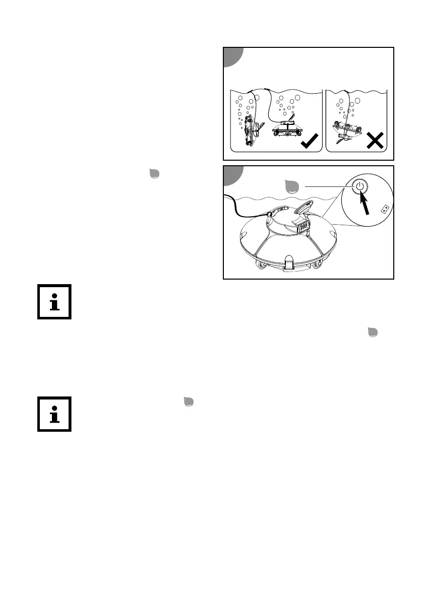 The device is in the pool and starts cleaning with a me delay.