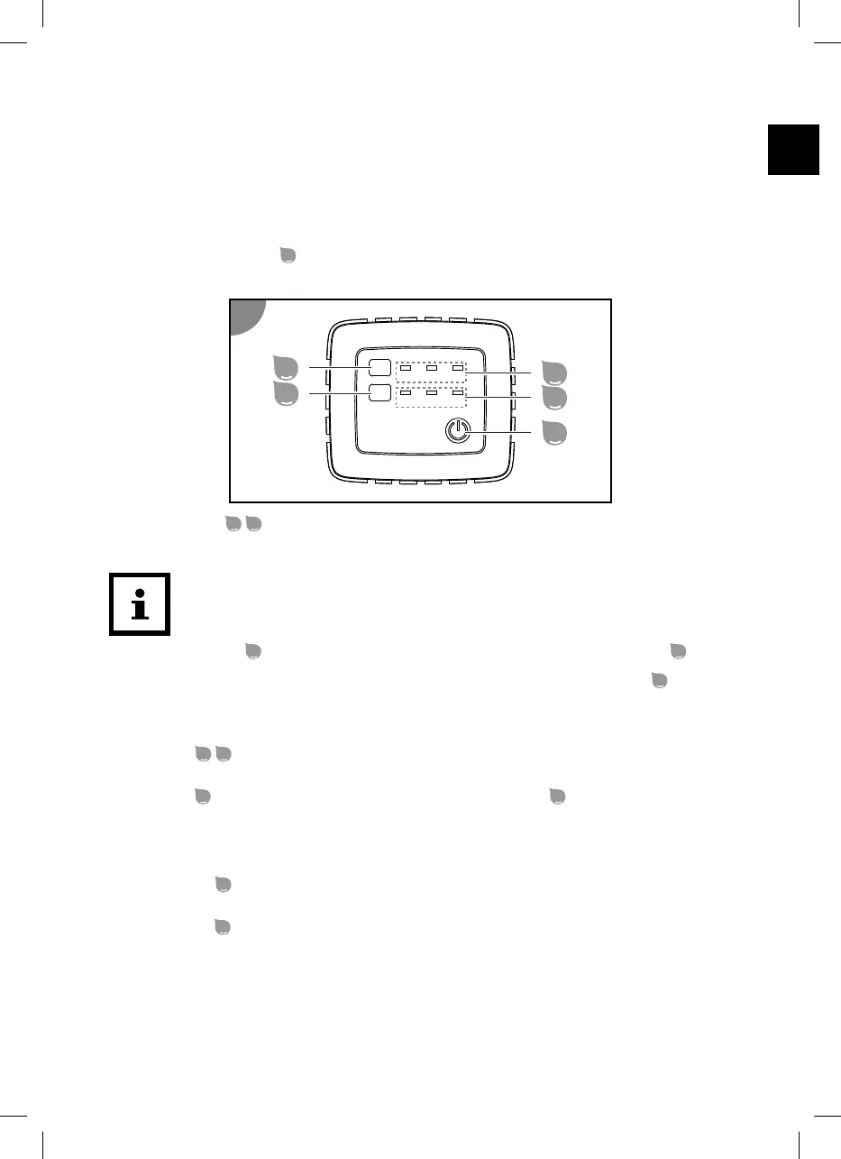 und nach Betriebsstart den aktuell gewählten Modus durch permanentes Leuchten an. Ist kein