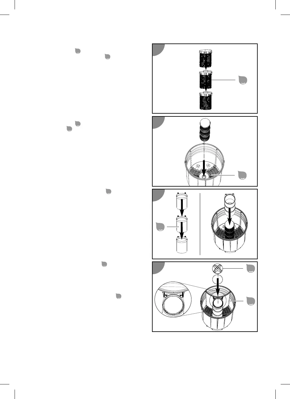 Ring in den obersten Filterbehälter bis der