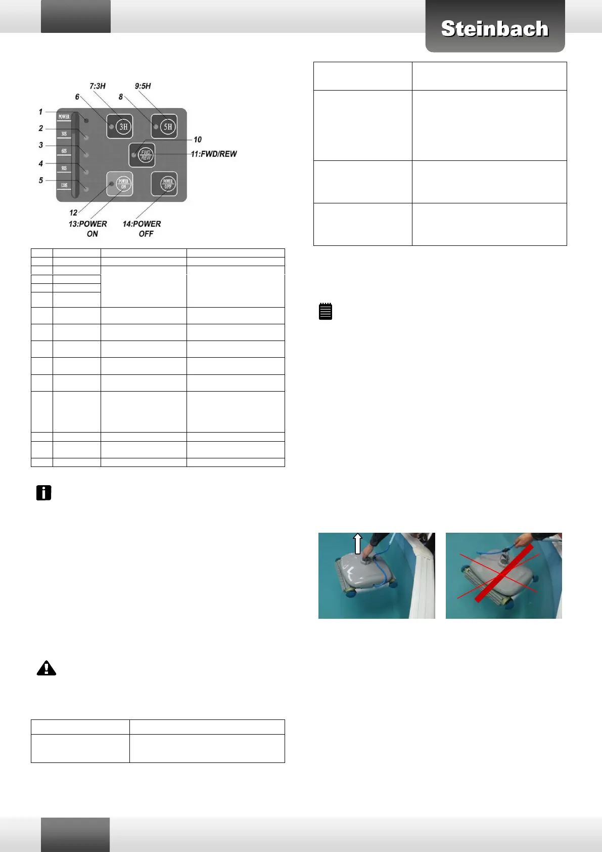 rauf achten, dass der Reiniger nicht gegen die Beckenwand stößt,