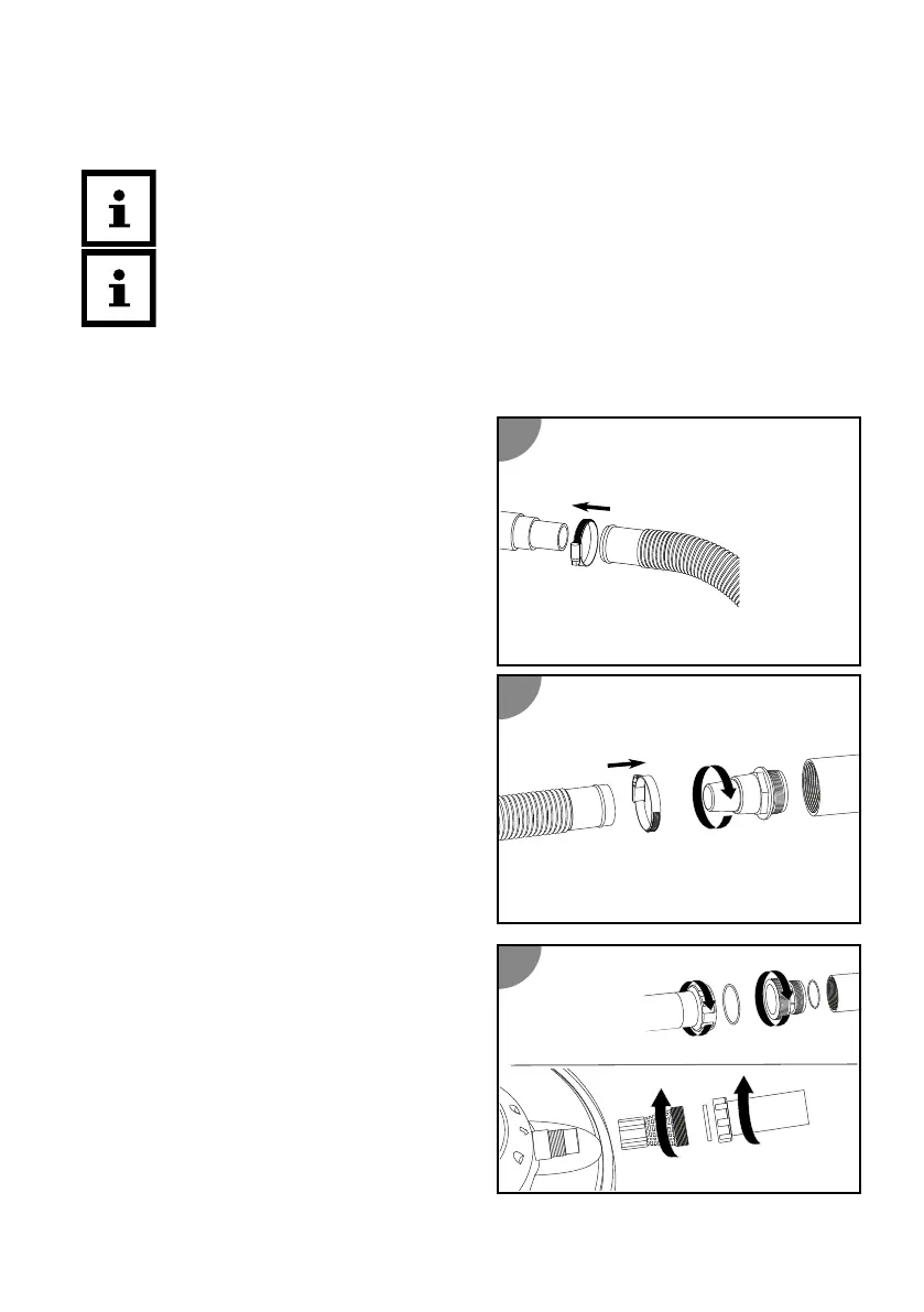 Utilisez des tuyaux de piscine d’un diamètre de 32/38 mm, adaptés aux raccords décrits. Pour les
