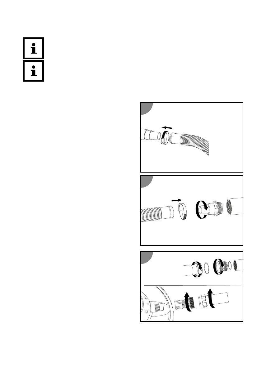 Per le connessioni descritte, utilizzare tubi flessibili per piscina idonei da Ø 32 / 38 mm. Per gli altri tubi