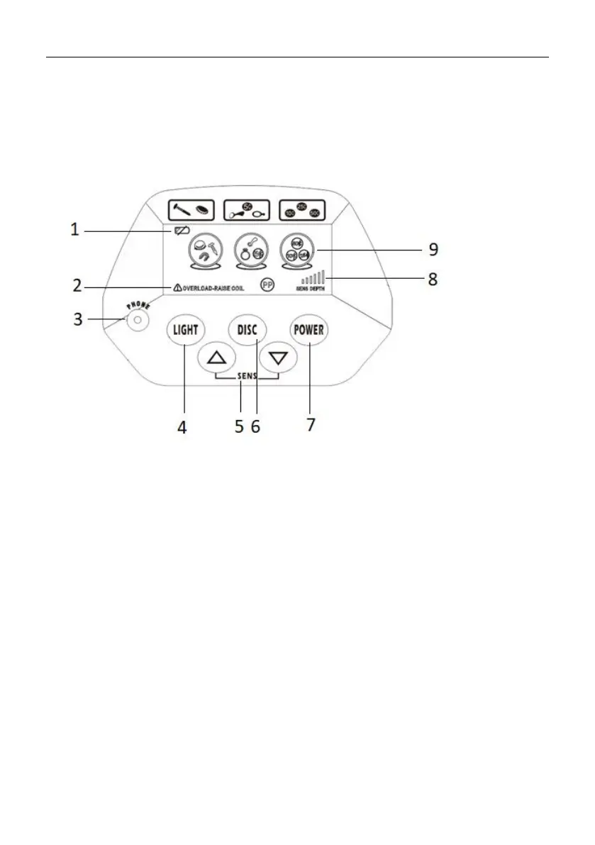 6. DISC - Metal object discrimination / elimination button.