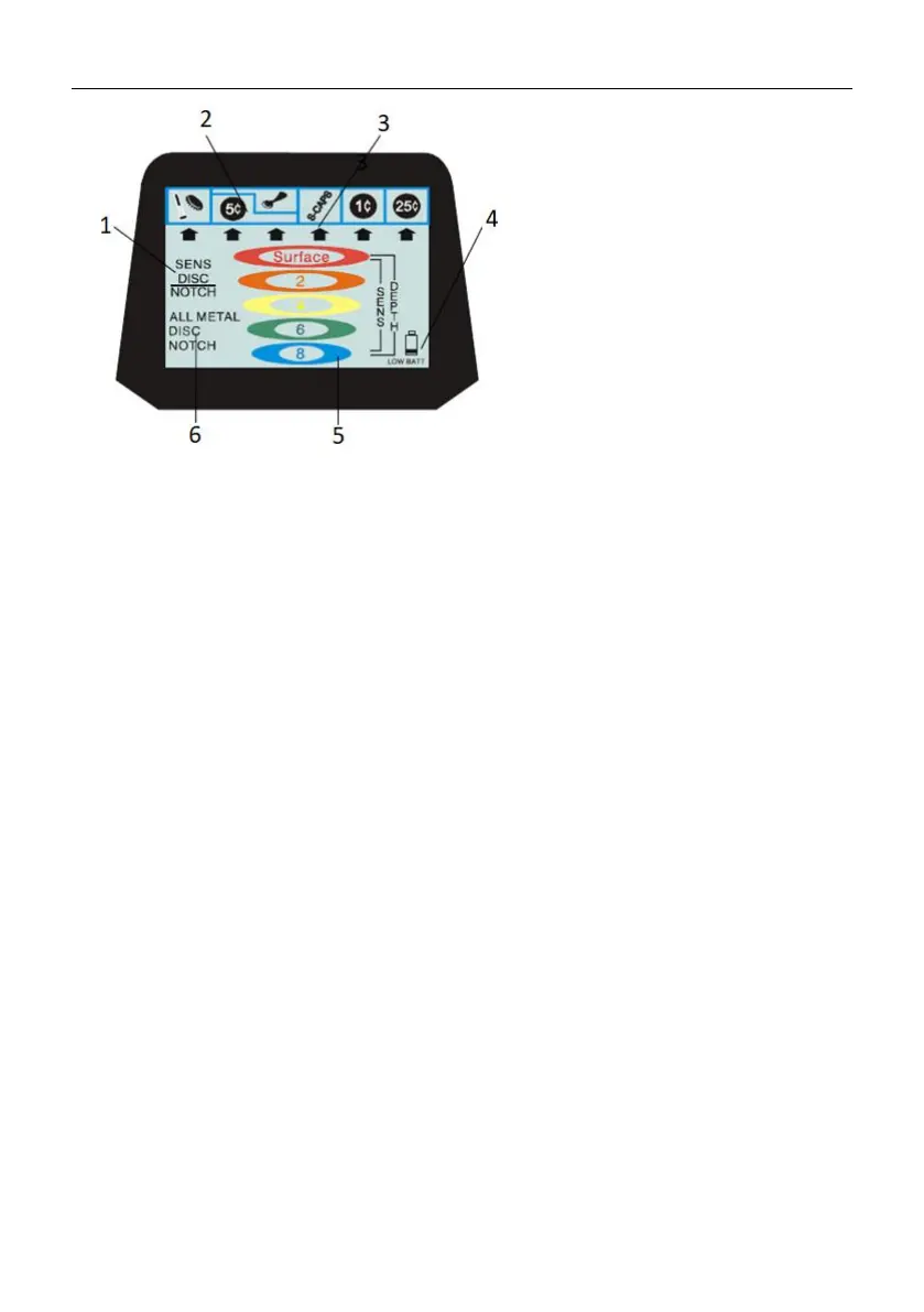 5. Sensitivity / Depth Indicator. The indicator displays the sensitivity of the
