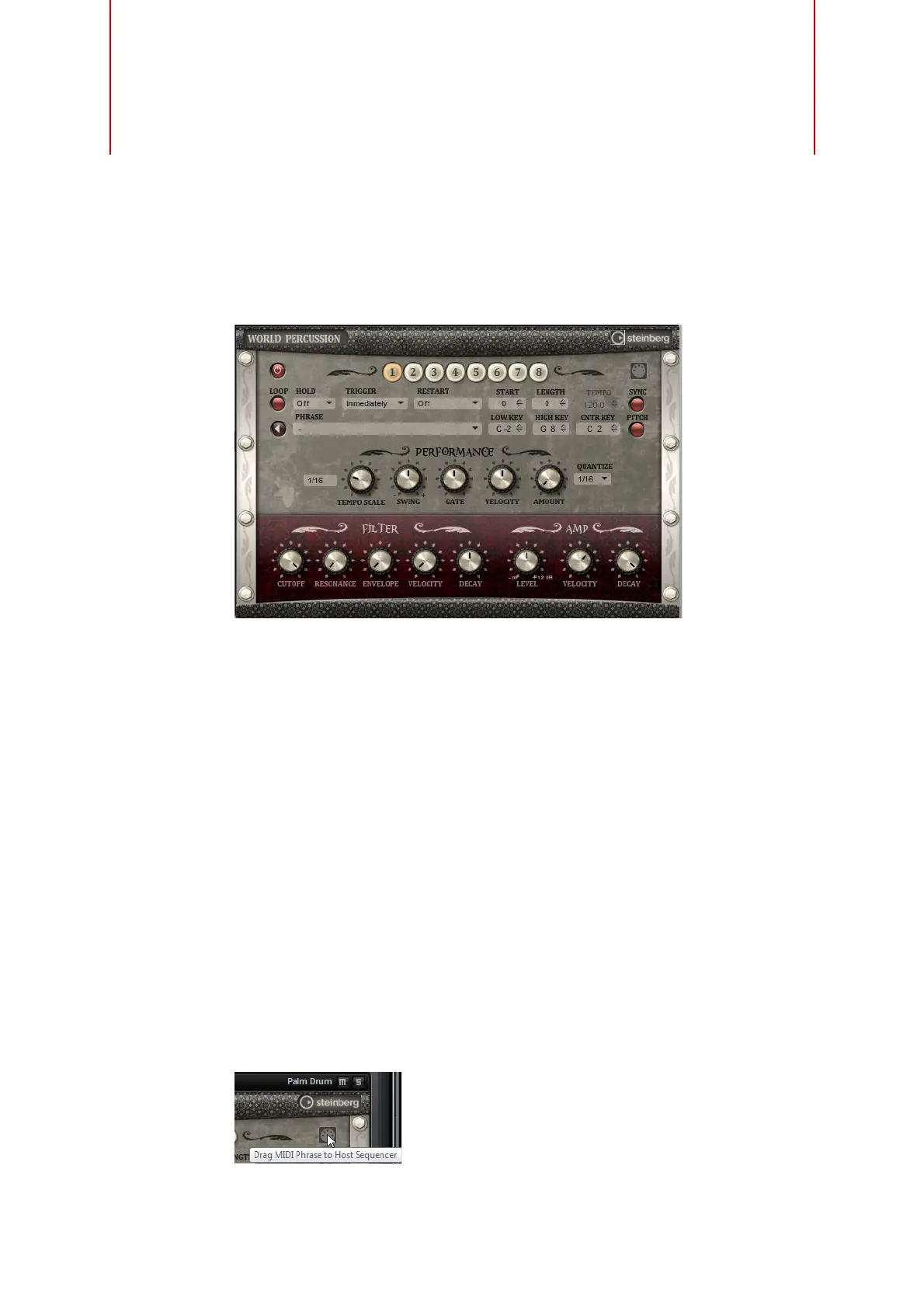 associated MIDI phrases. The instruments can be globally fine-tuned with filter and