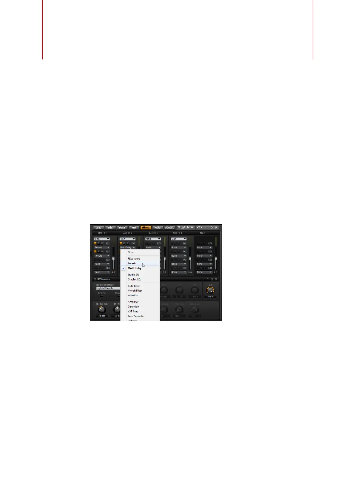 Ö The Mix parameter of an effect inserted into an AUX bus is set to 50 % by default.