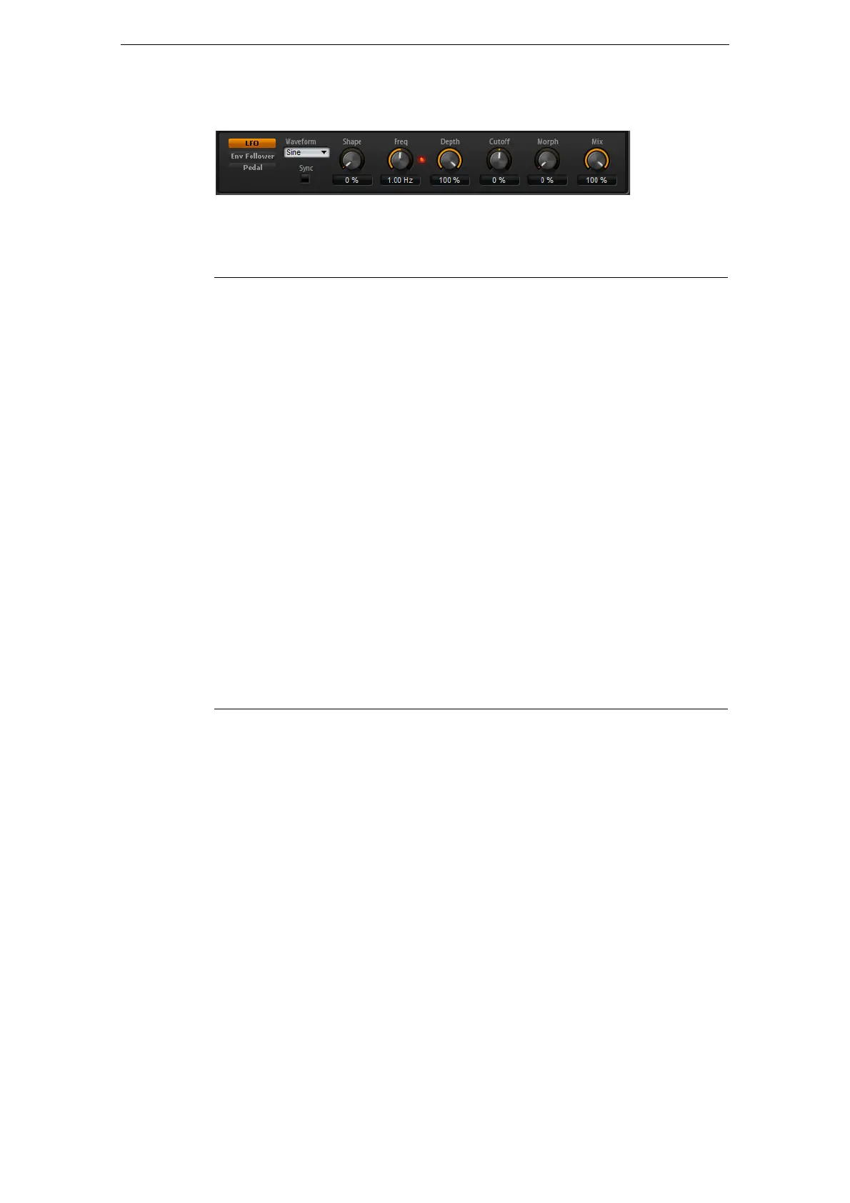 Sine This produces smooth modulation, suitable for vibrato or tremolo.