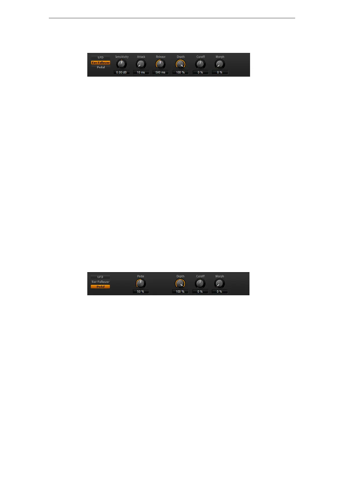 Determines the modulation intensity of the Envelope Follower on the filter morph.