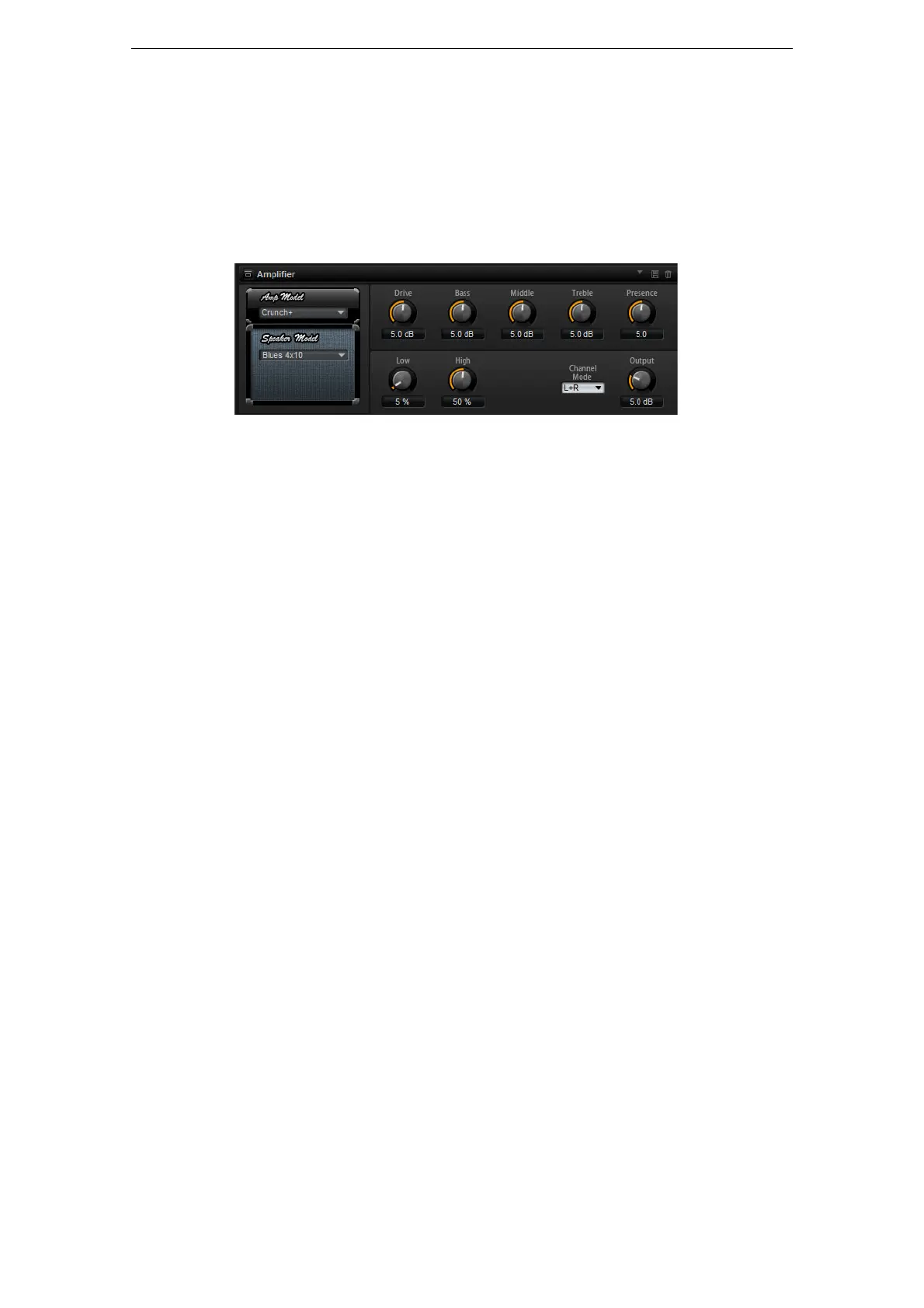 This effect emulates the sound of an amplifier with speakers. There are different