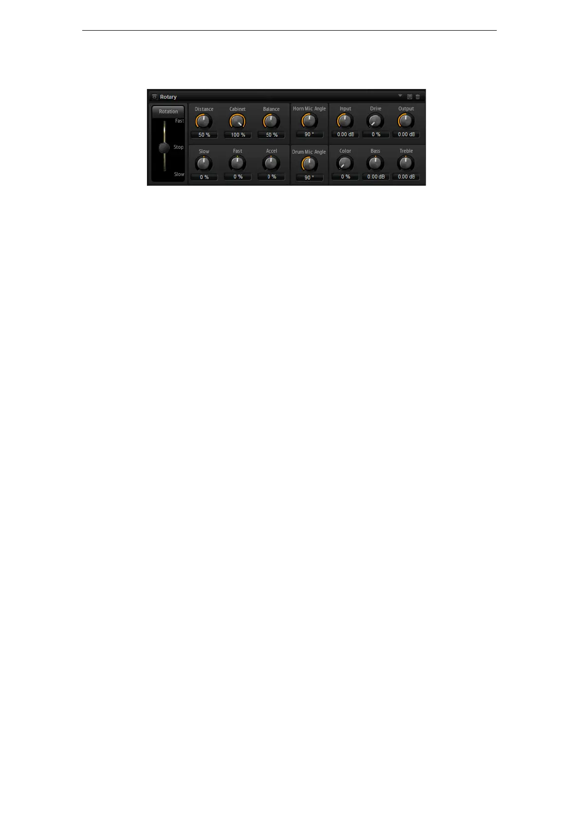 The Rotary effect emulates the sound of a vintage rotary speaker including amplifier,