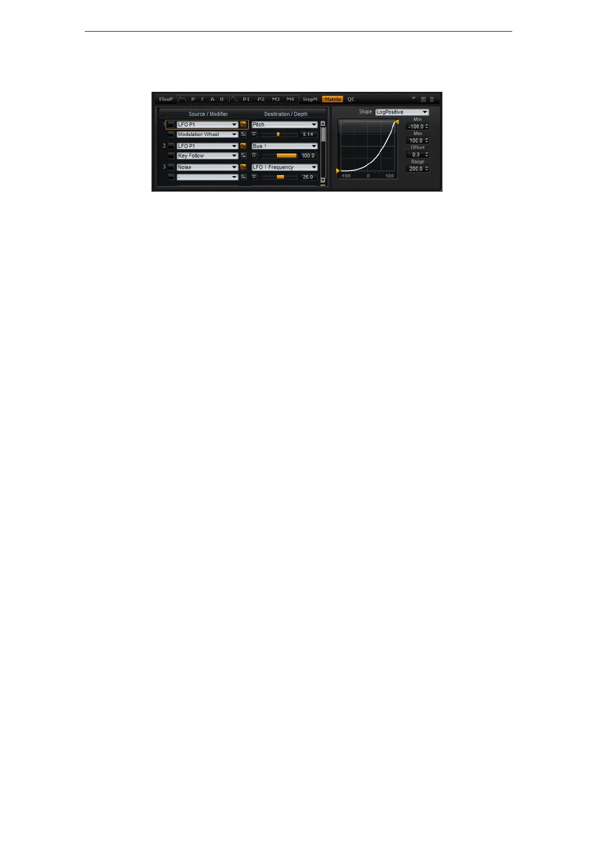 Um weitere Modulationen zuzuweisen, verwenden Sie die Modulationsmatrix.