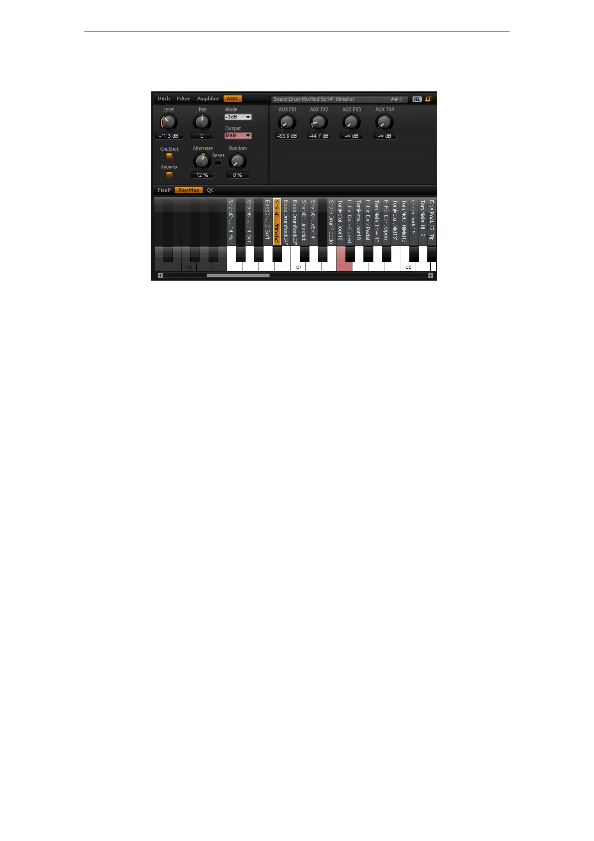 Jedes Drum-Instrument bzw. Loop-Slice verfügt über individuelle Send-Pegel, die auf