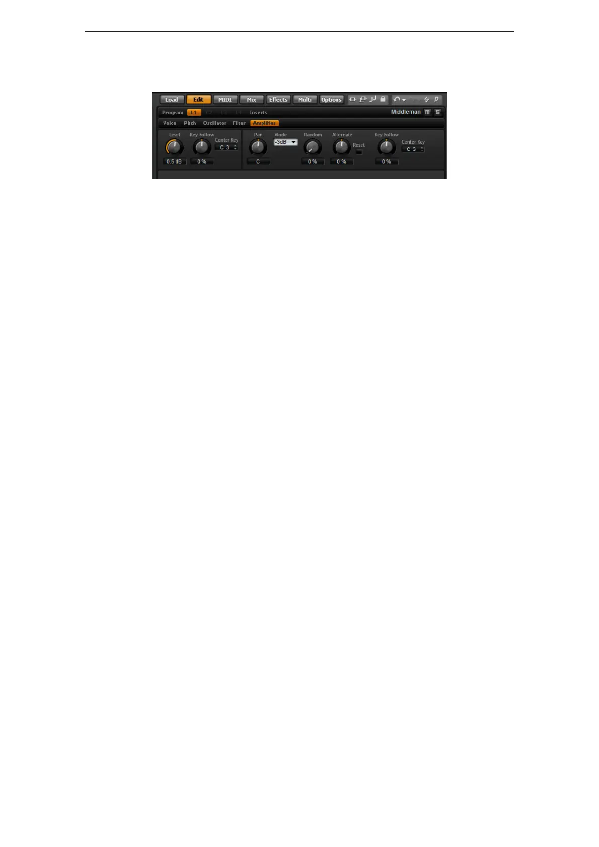 Here you can scale the loudness across the MIDI keyboard. Set this parameter to