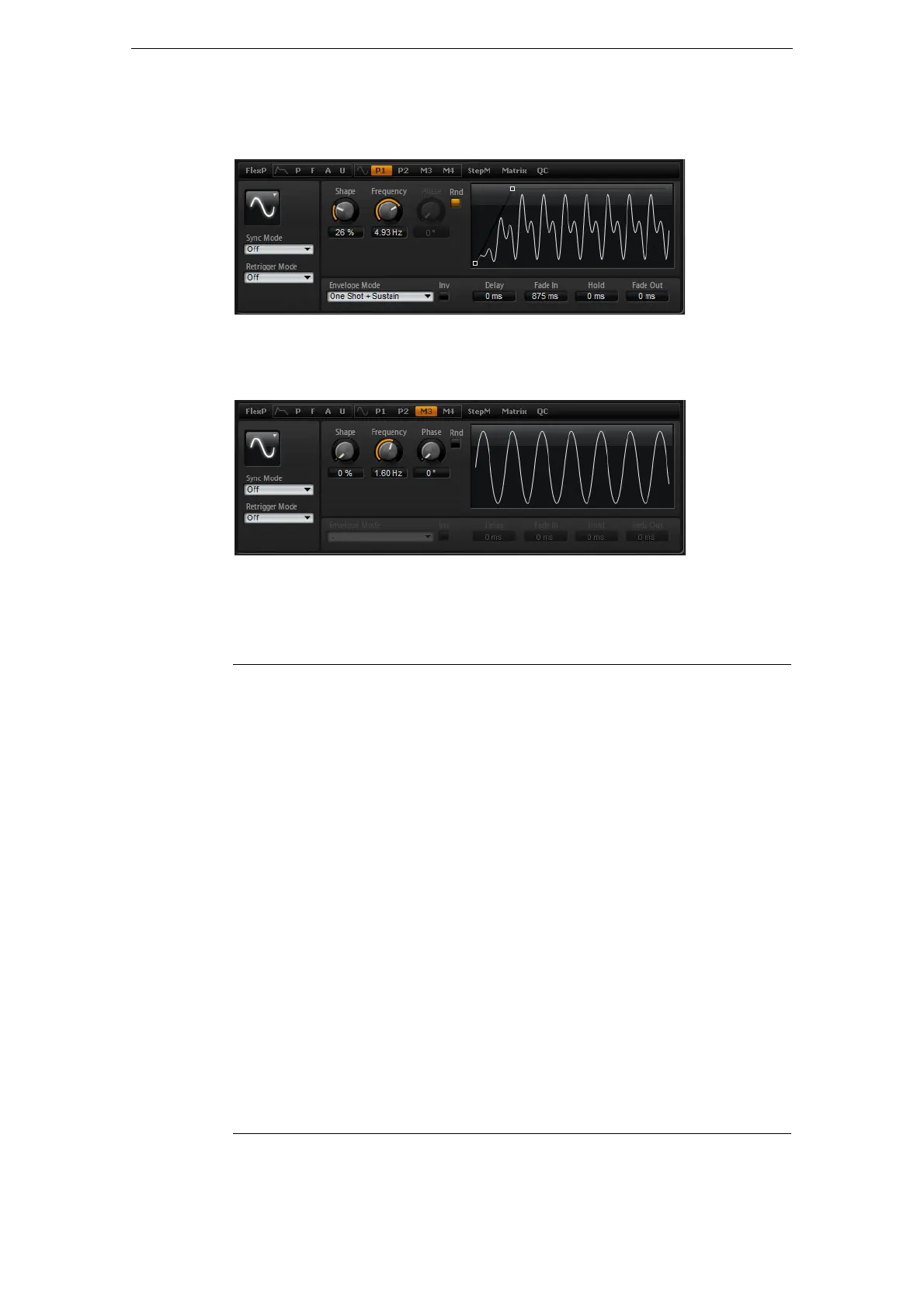 • To select one of the monophonic LFOs, click M3 or M4. This refers to LFO3 and