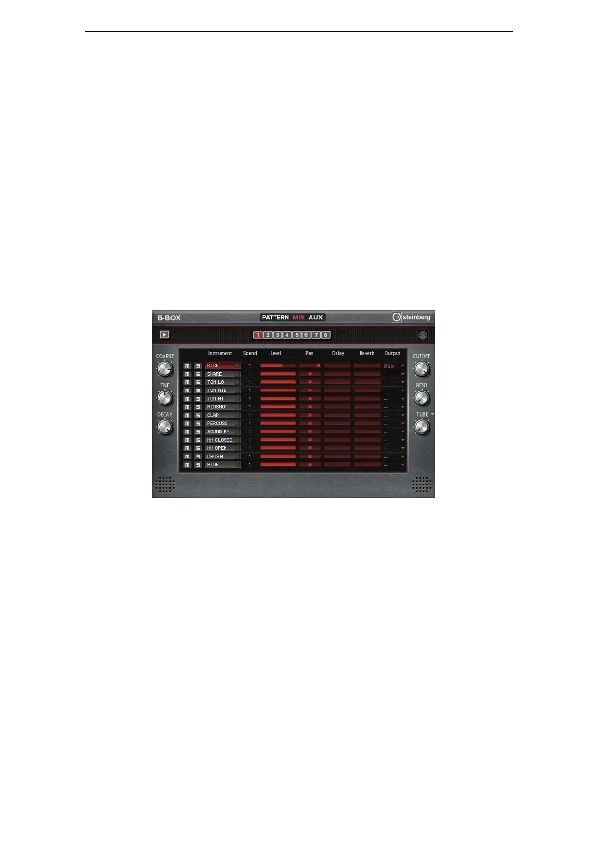 La page Mix vous permet d’ajouter des effets à vos motifs. Cette page contient les