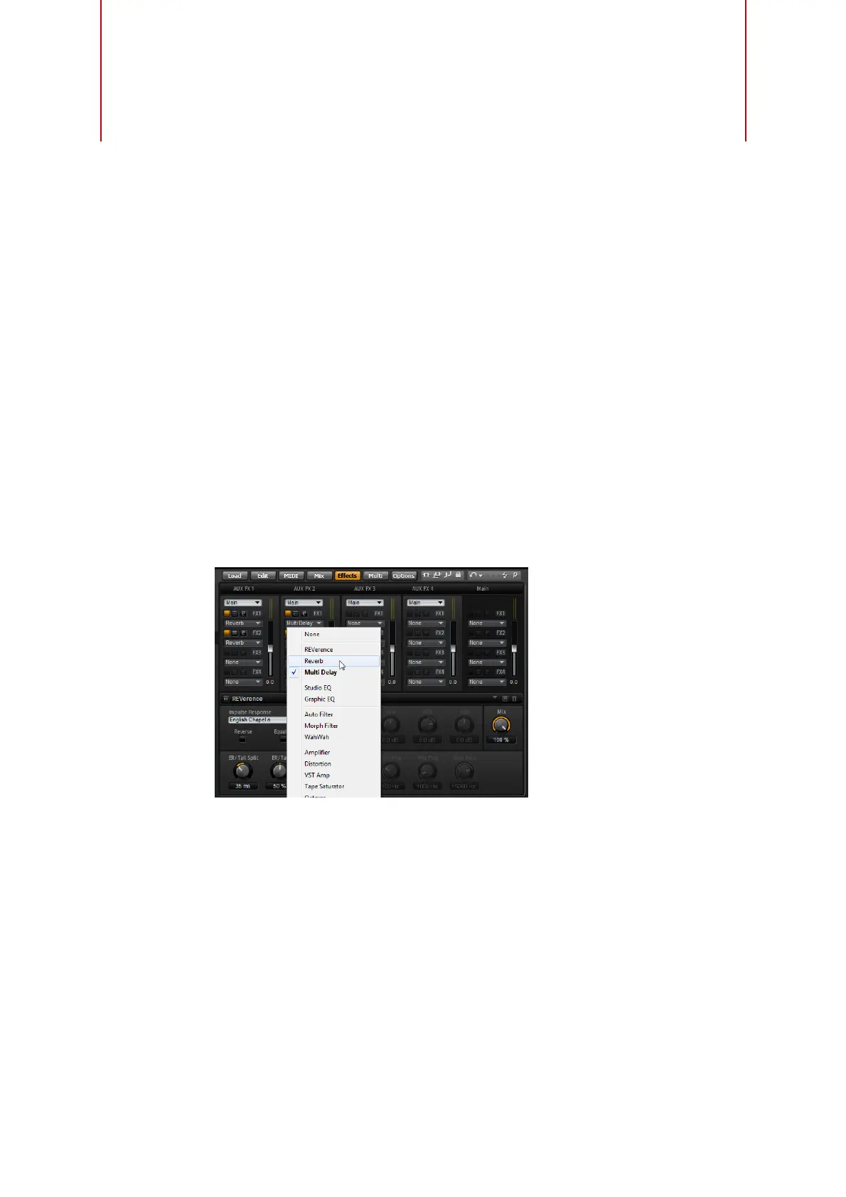 • Pour assigner un effet d’insert, cliquez sur un slot d’effet et sélectionnez un effet