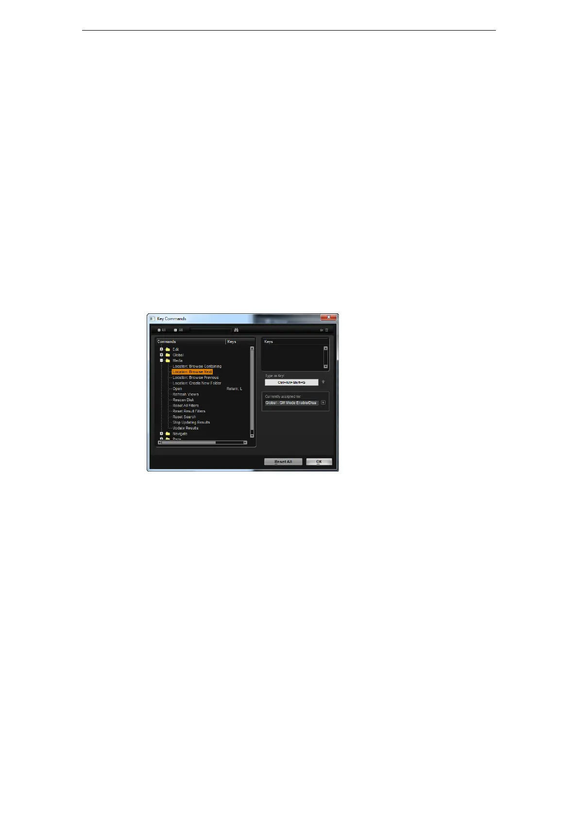 Cliquez sur le bouton Key Commands afin d’ouvrir la boîte de dialogue Key
