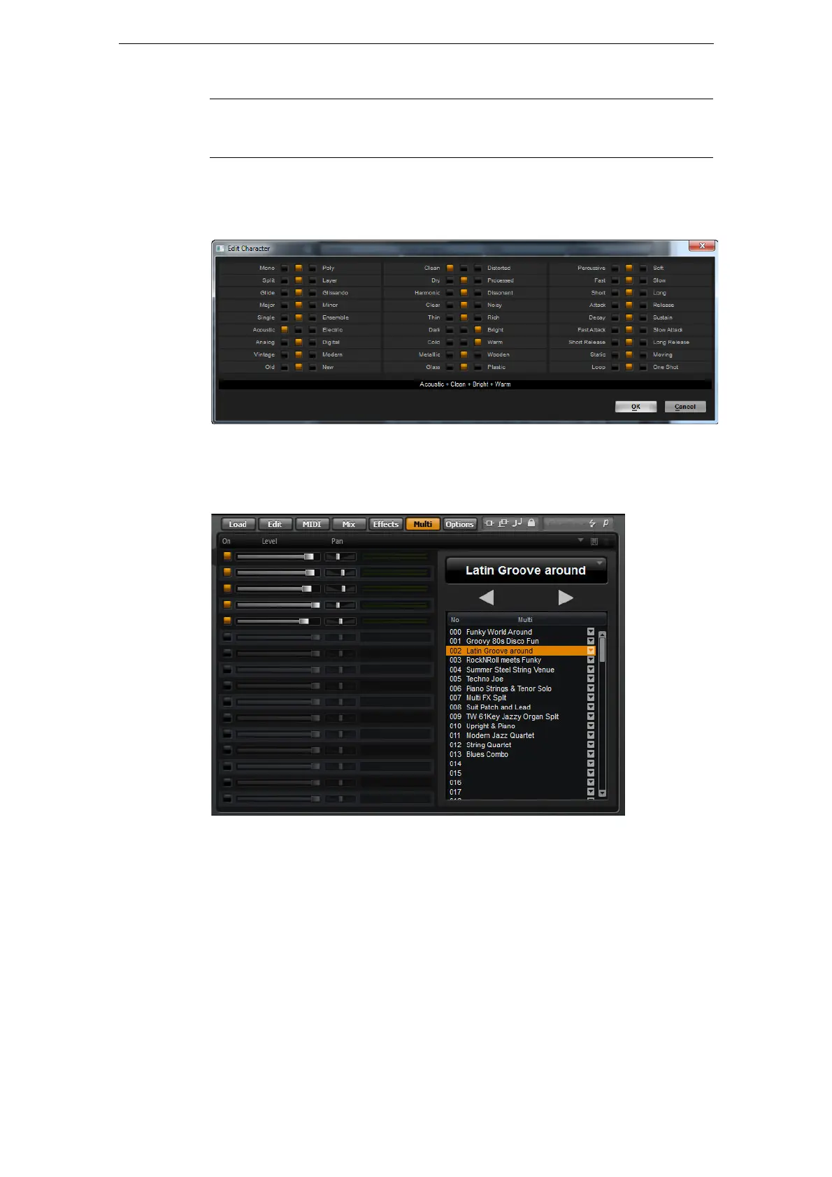 HALionSonicは特別なマルチチェーン機能を備えており、128個のマルチのリストを設定できます。