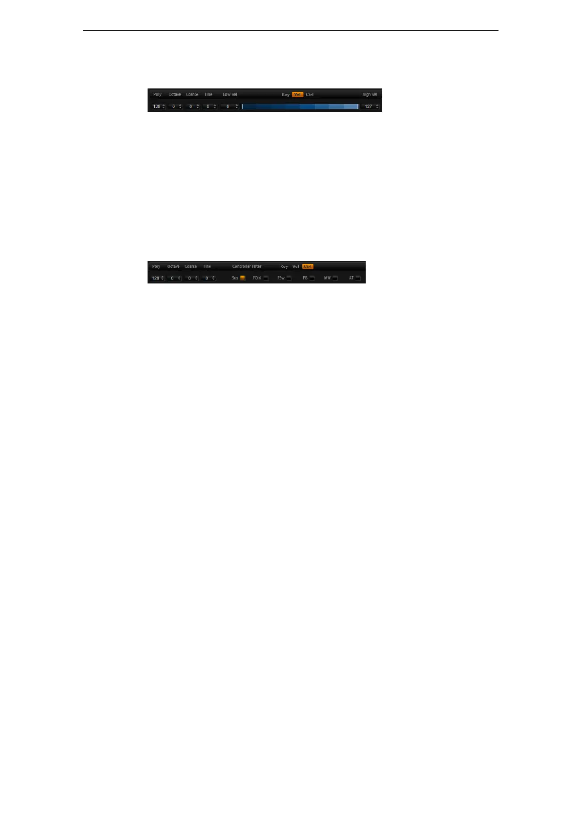 す。ベロシティー範囲コントロールの中をクリックしてドラッグすると、両方の値が同時に動きます。