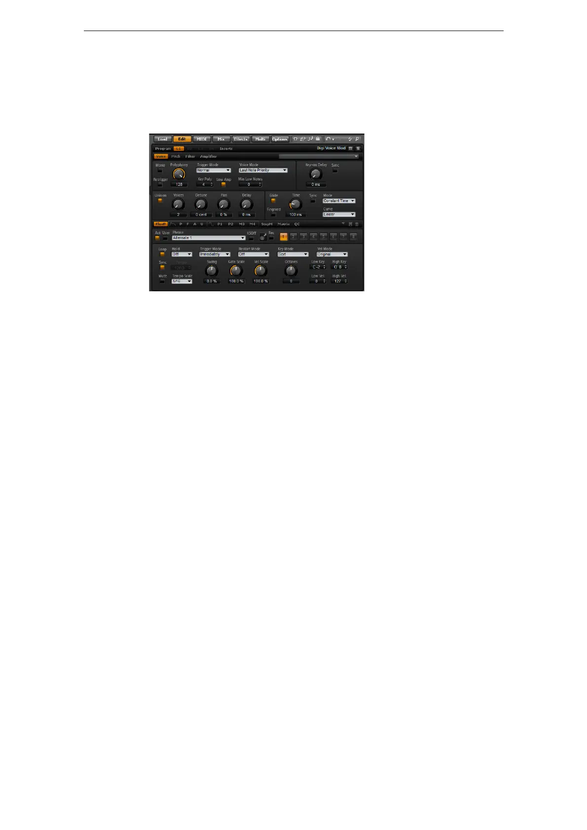 2. 表示したいパラメーター(「Pitch」、「Filter」、「Amp」など )のページボタンをクリックします。