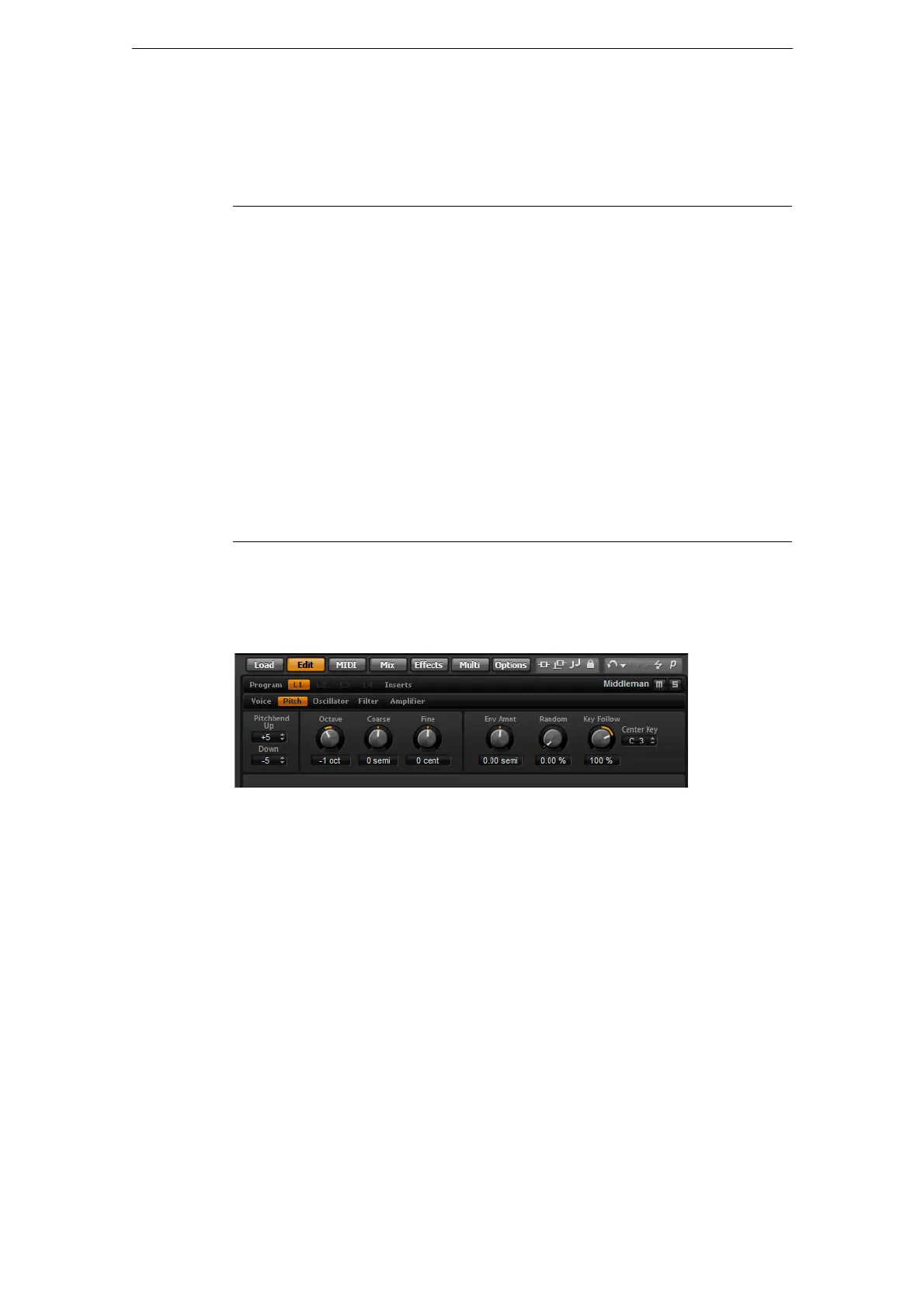 半音、およびセント単位で調整できます。さらに、「PitchEnvelope」、キーボードから、または各キー
