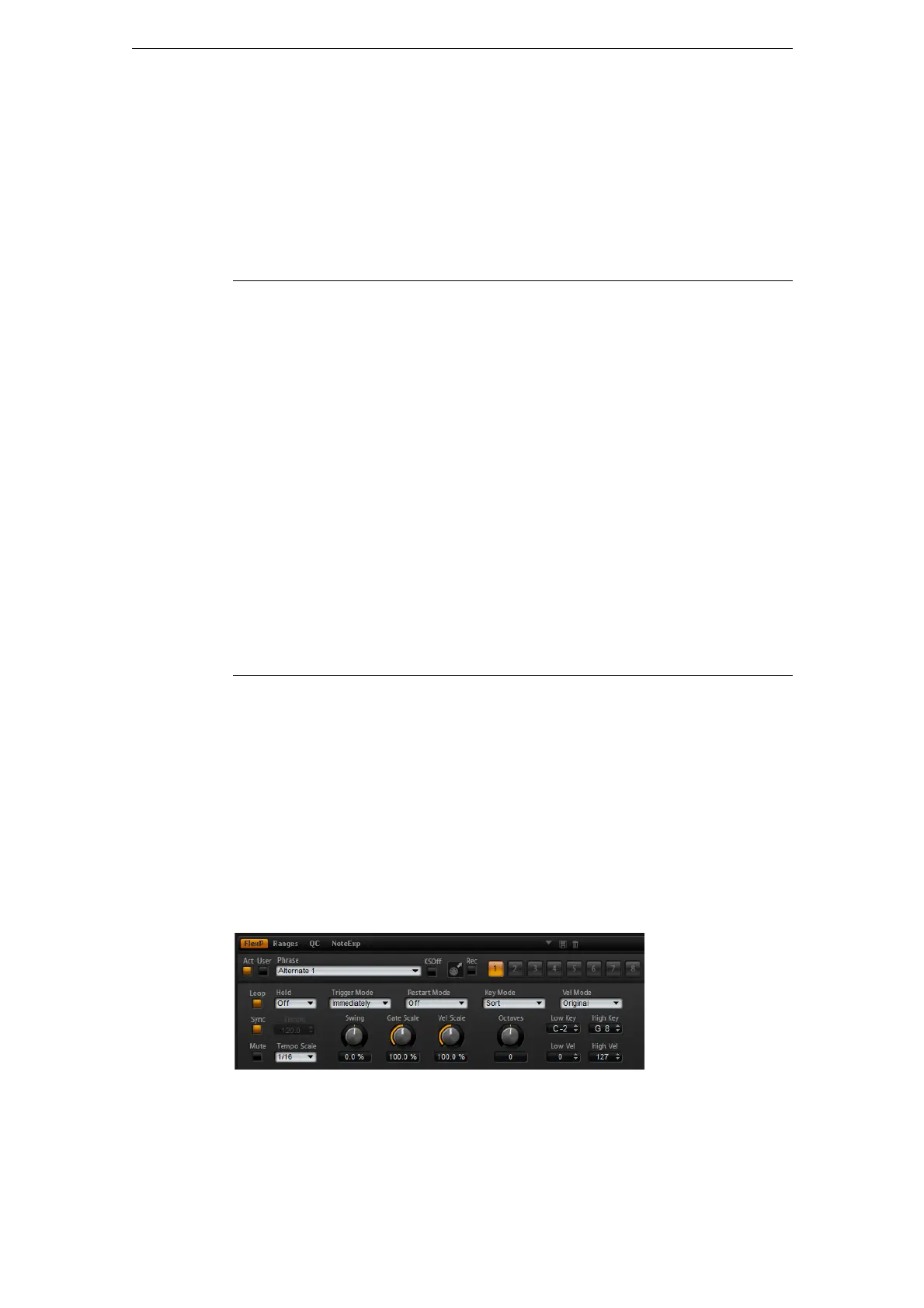 それぞれのプログラムは、アルペジオフレーズプレーヤー(FlexPhrasers)を5種類まで使用できます。