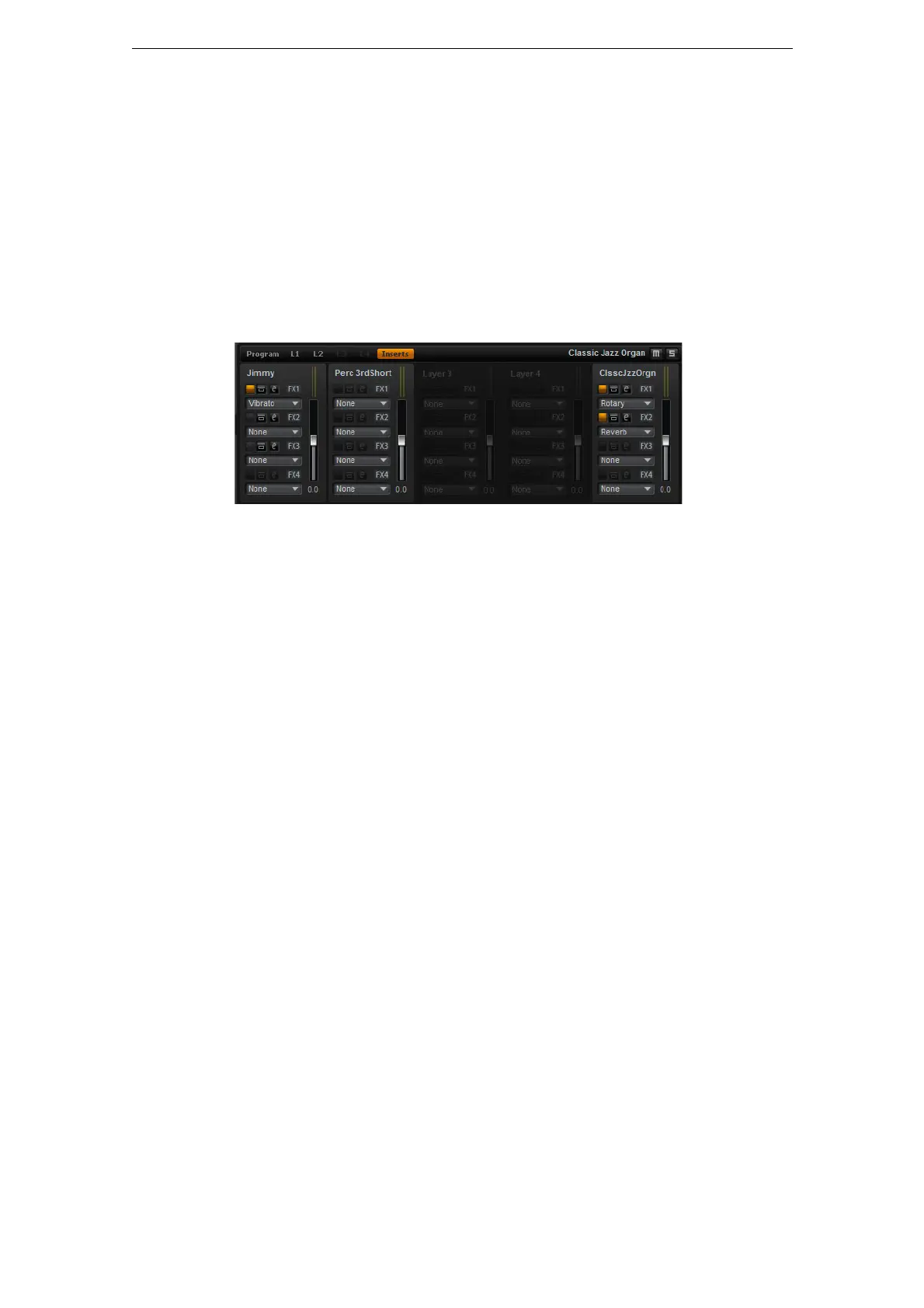 を与えます。プログラムに割り当てるインサートエフェクトは、4つのレイヤーすべてに影響を与え