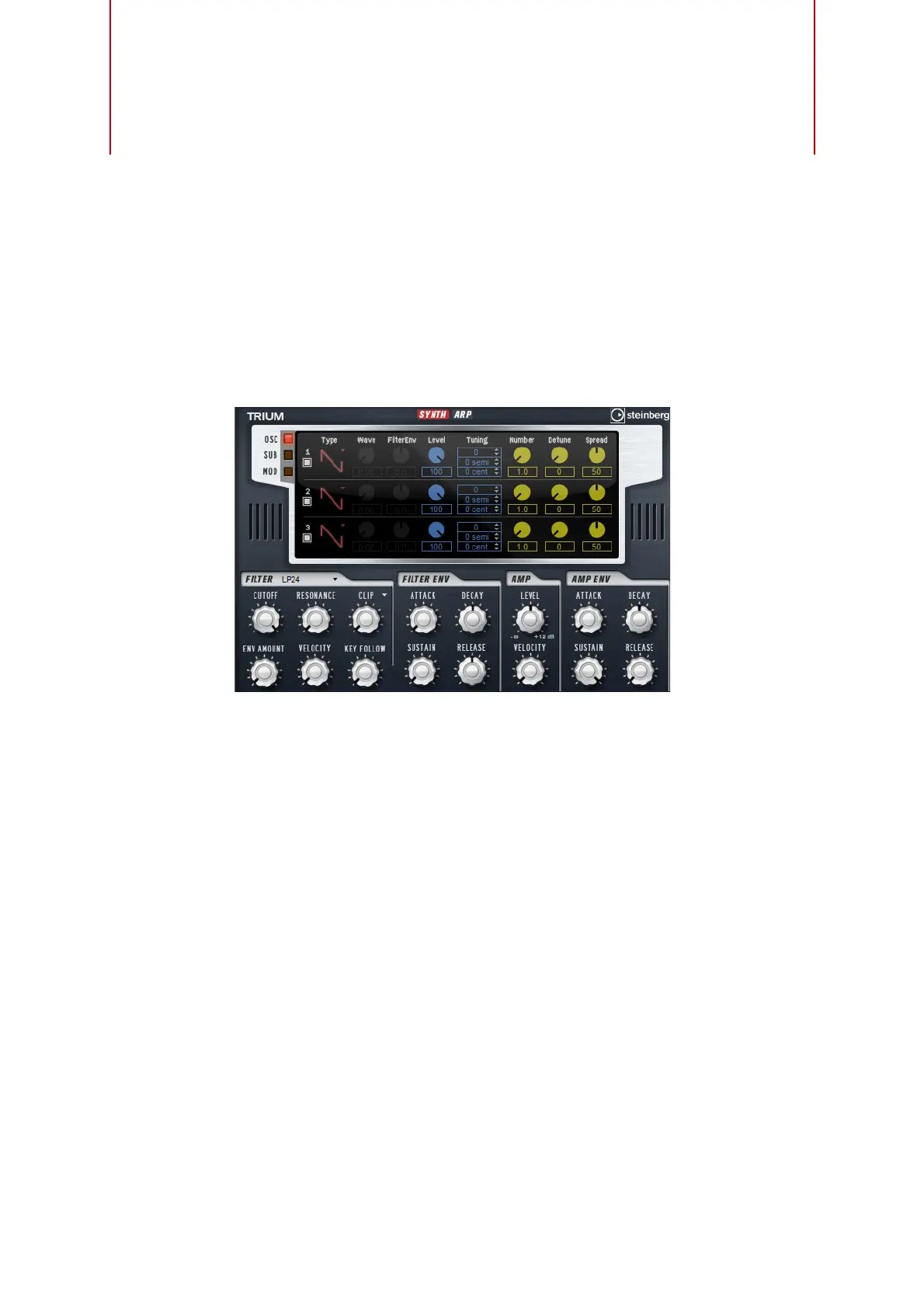 Triumは、近代的で豊かなサウンドを作り出すように設計されています。3つのオシレーター、サブ