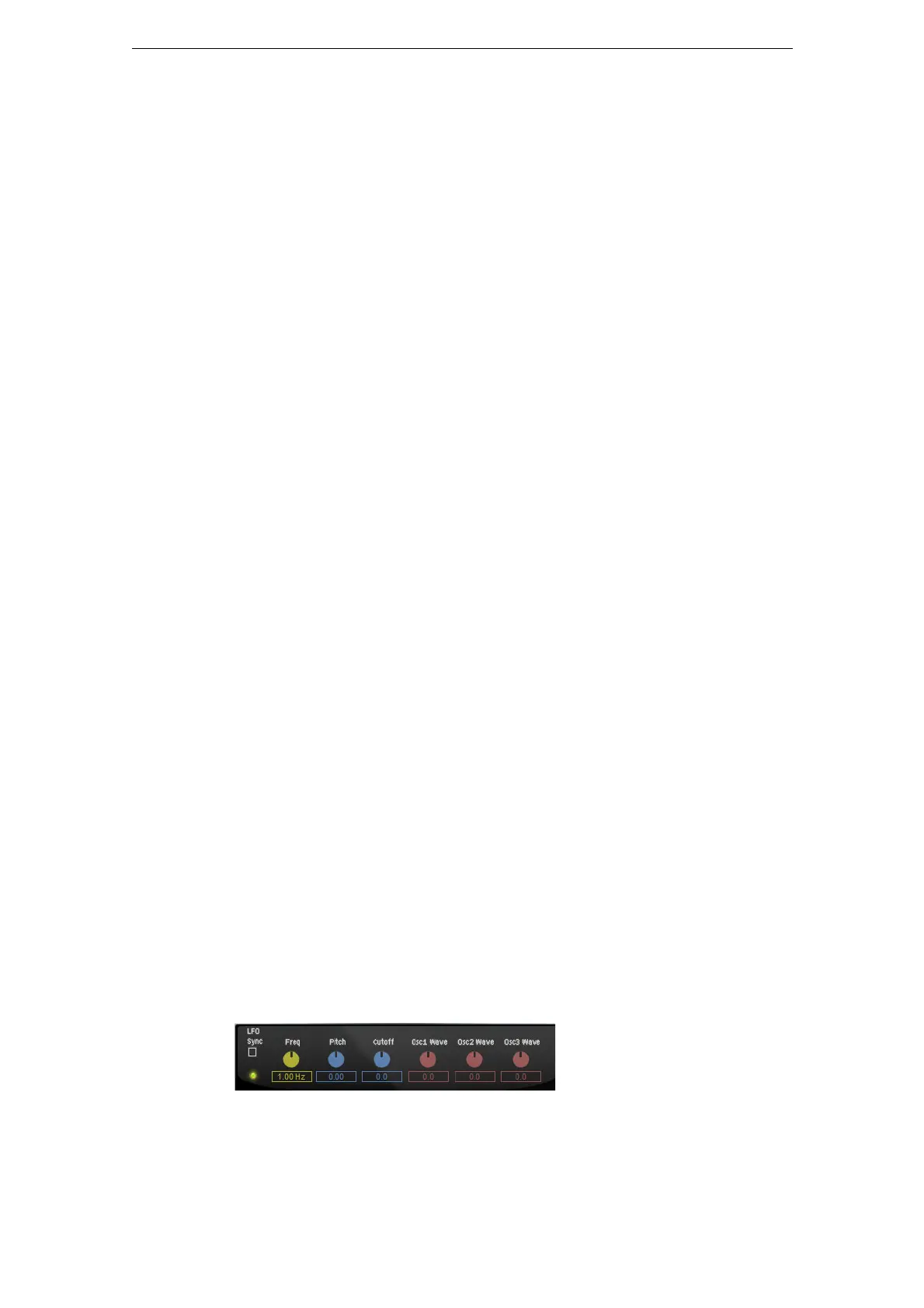 「MOD」ページの上側のセクションにはLFOの設定があり、下側のセクションにはビブラートの設定
