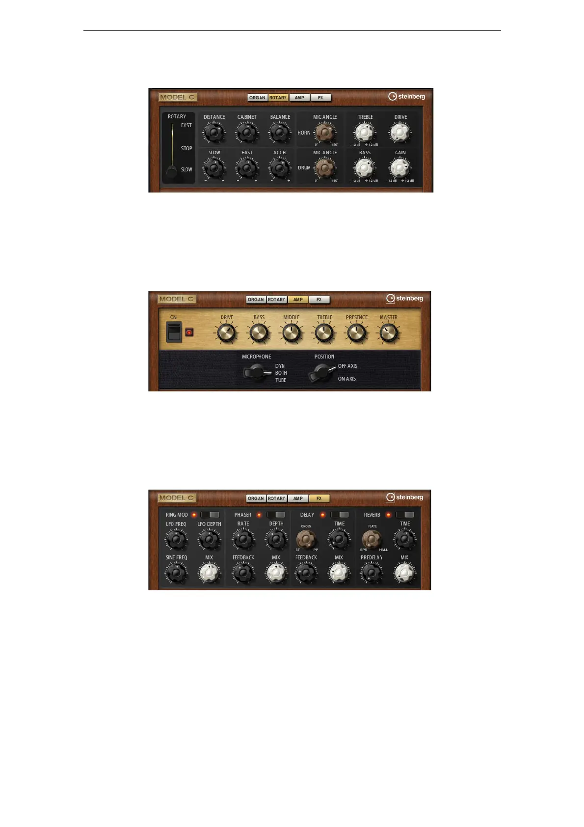 ➯「ORGAN」ページの「ROTARY/AMP」ダイアルで信号をロータリーエフェクトに送るよう設定した