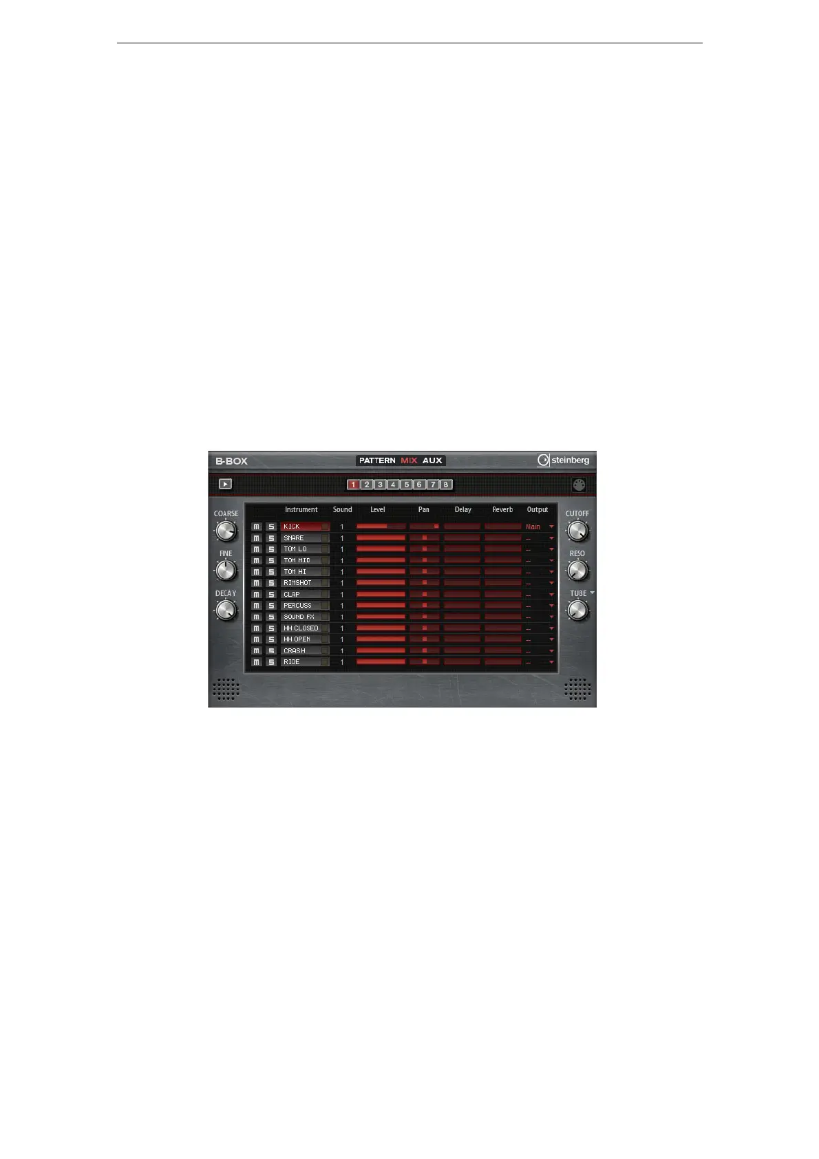 「MIX」ページでは、パターンにエフェクトを適用できます。このページには以下の設定があります。