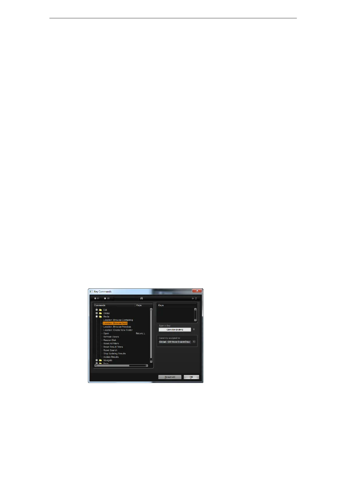 • インストゥルメント機能の「KeyCommands」ダイアログにアクセスするには、「Options」ページ