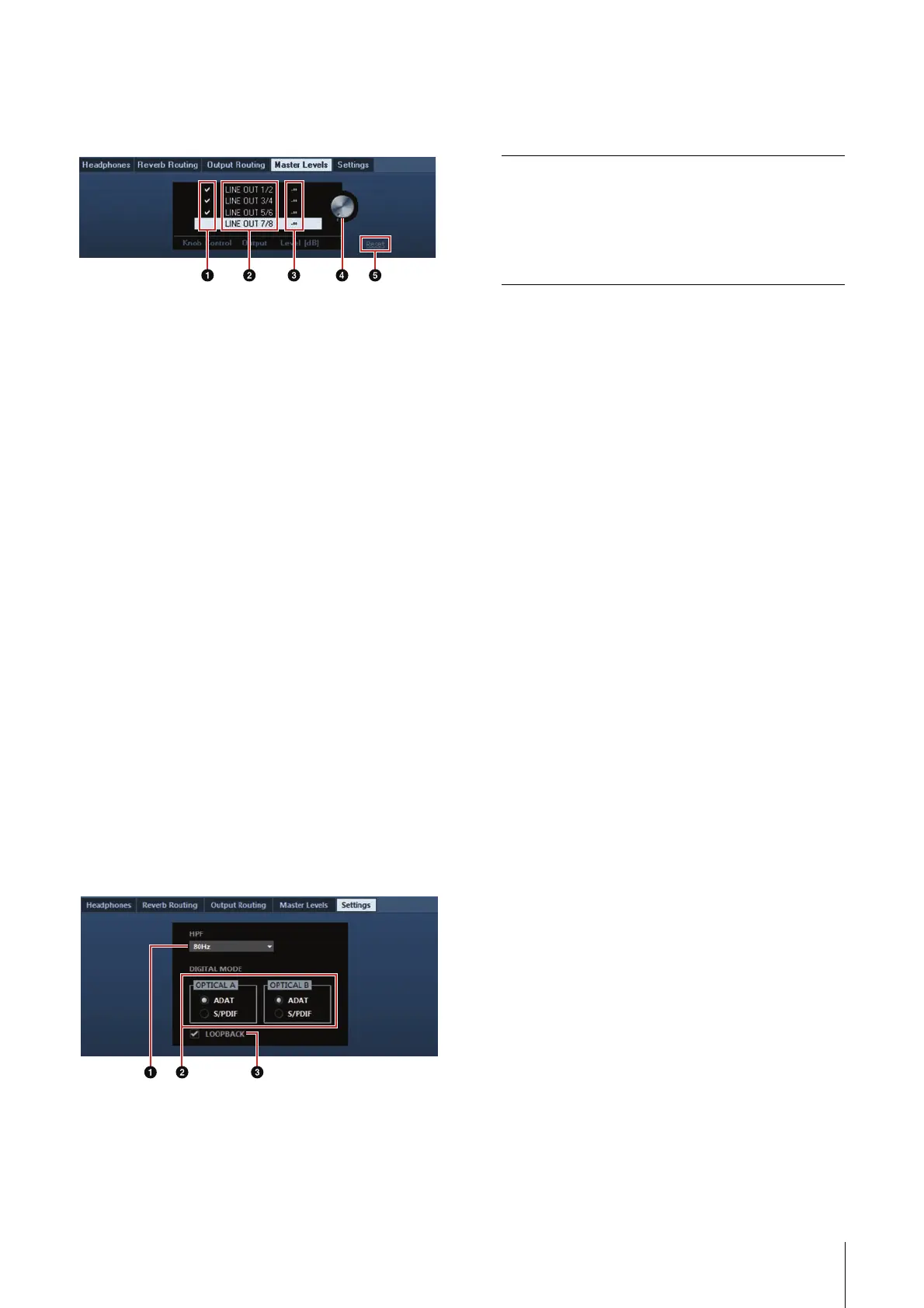 Sets the output signal level of all LINE OUTPUT