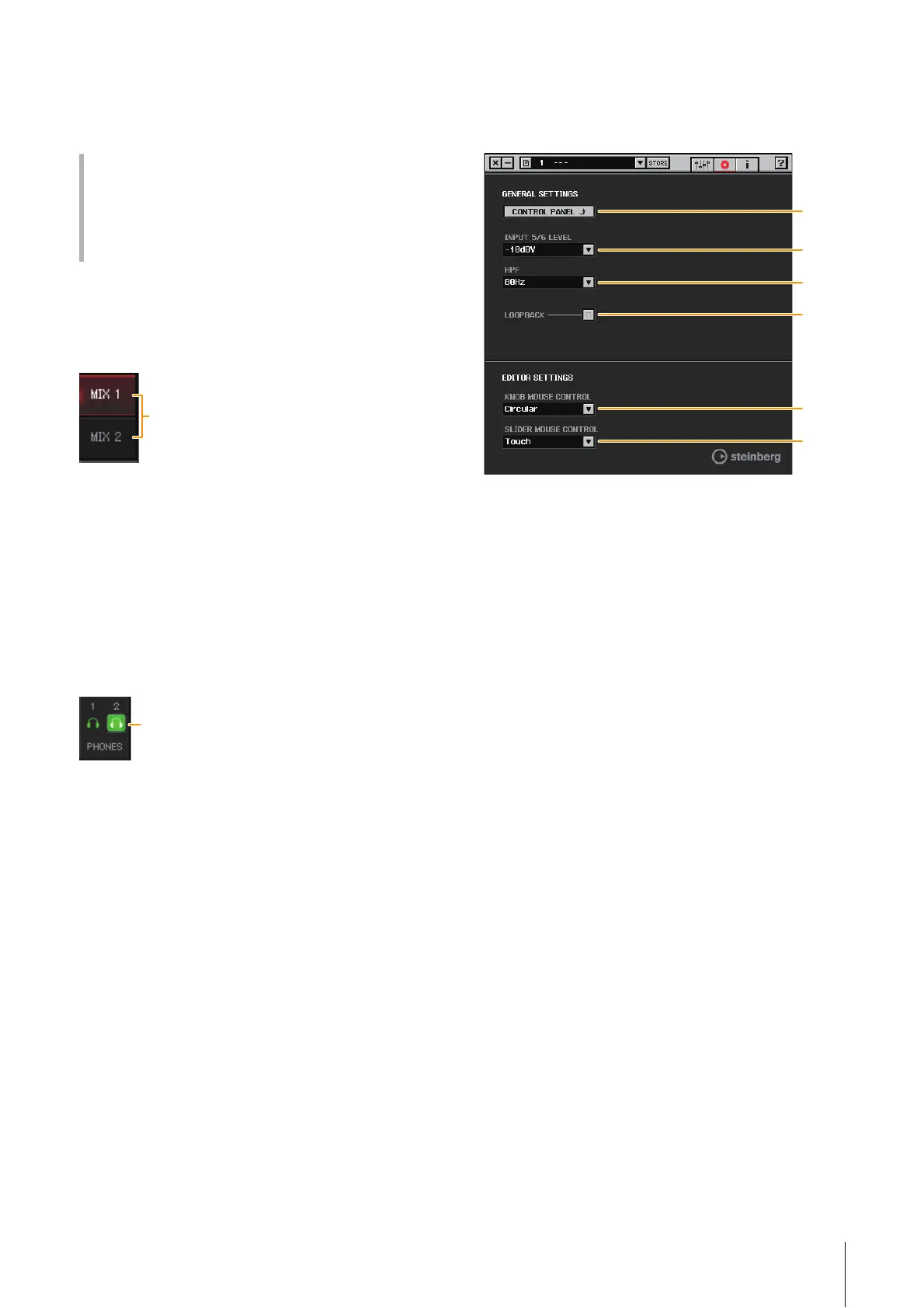 With [PHONES 2], either MIX 1 or MIX 2 can be selected. (UR-RT4